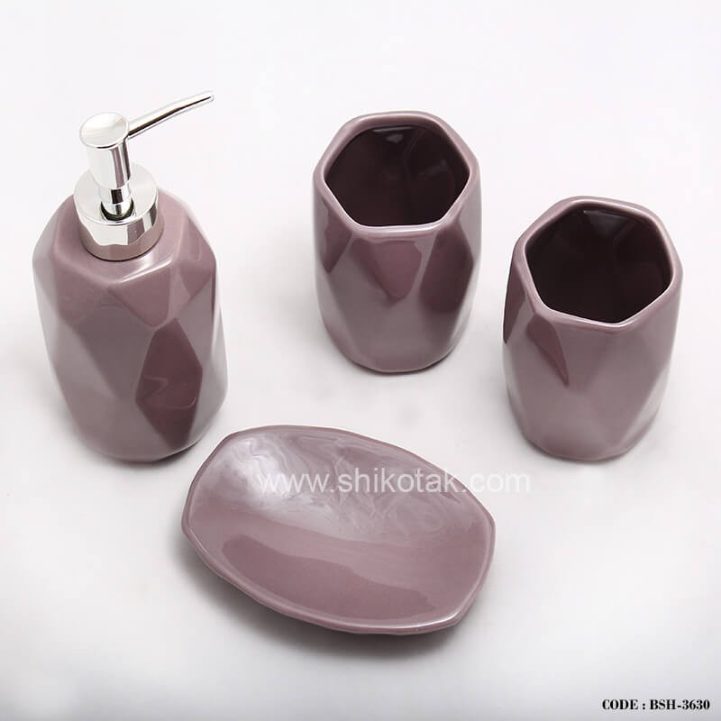 شامل | جا مسواکی، جا صابونی، جا مایع دستشویی، لیوان |