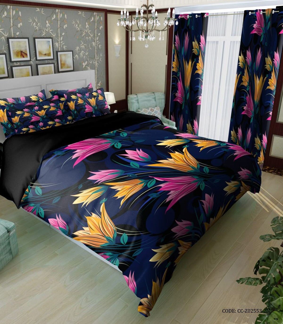 سرویس روتختی دونفره و یک نفره گلدار زمینه مشکی مدل یسنا
