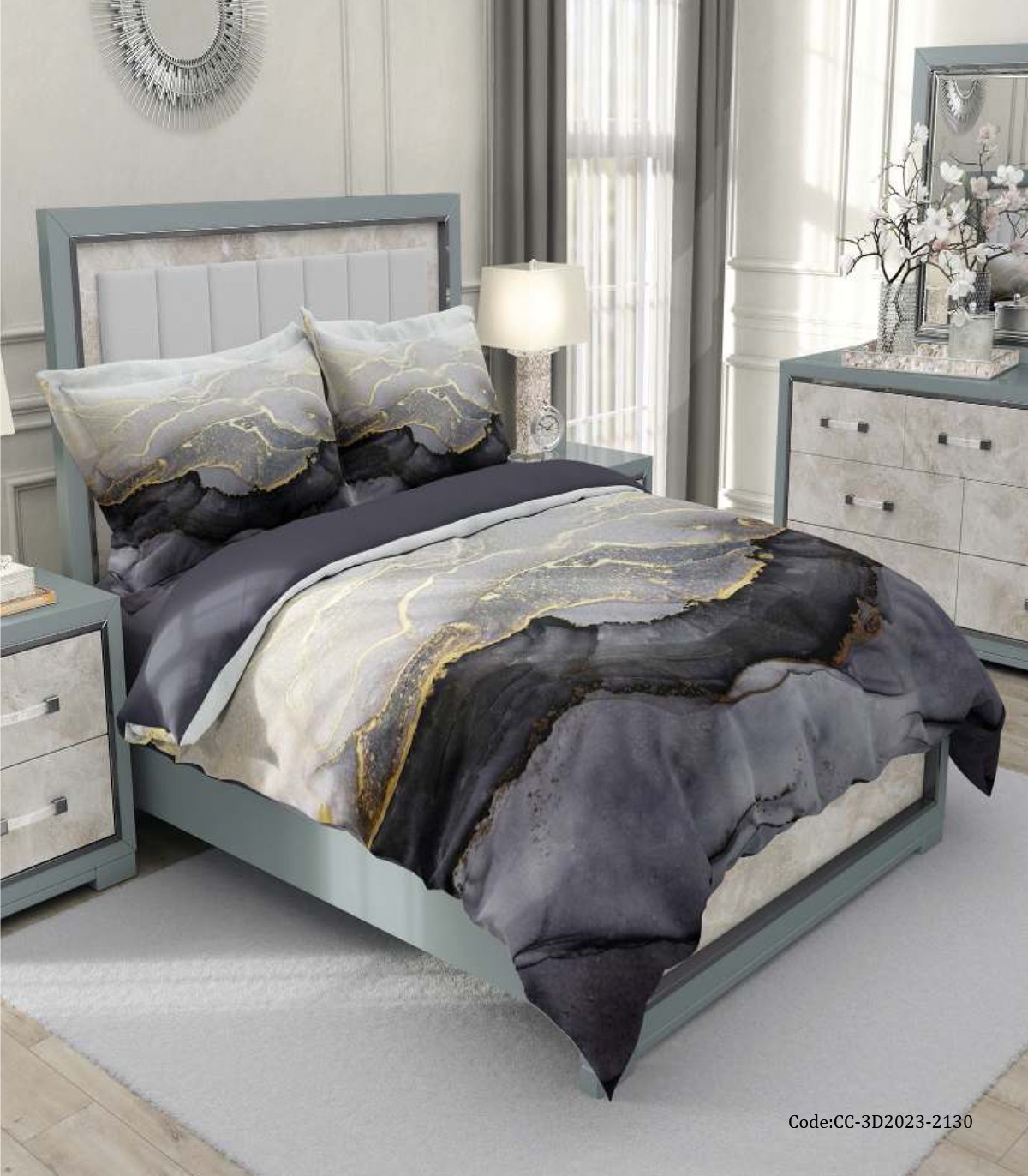 سرویس روتختی دو نفره طرح سنگ ترکیب رنگ مشکی طلایی