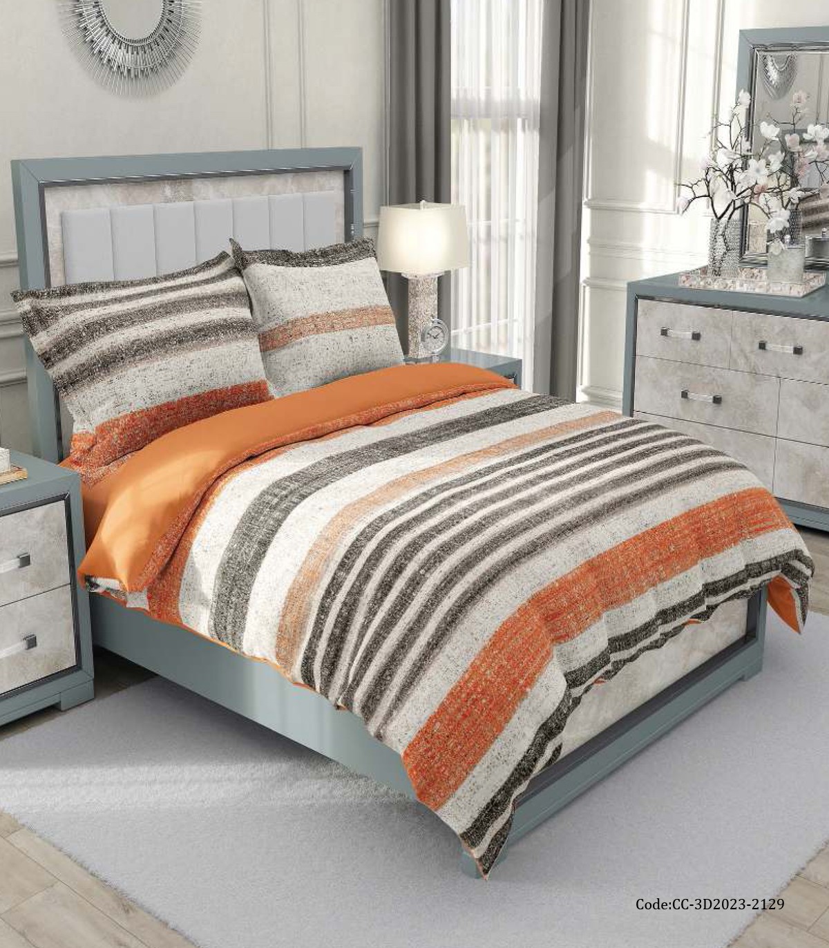 سرویس روتختی راه راه دو نفره کرم نارنجی مدل آریو