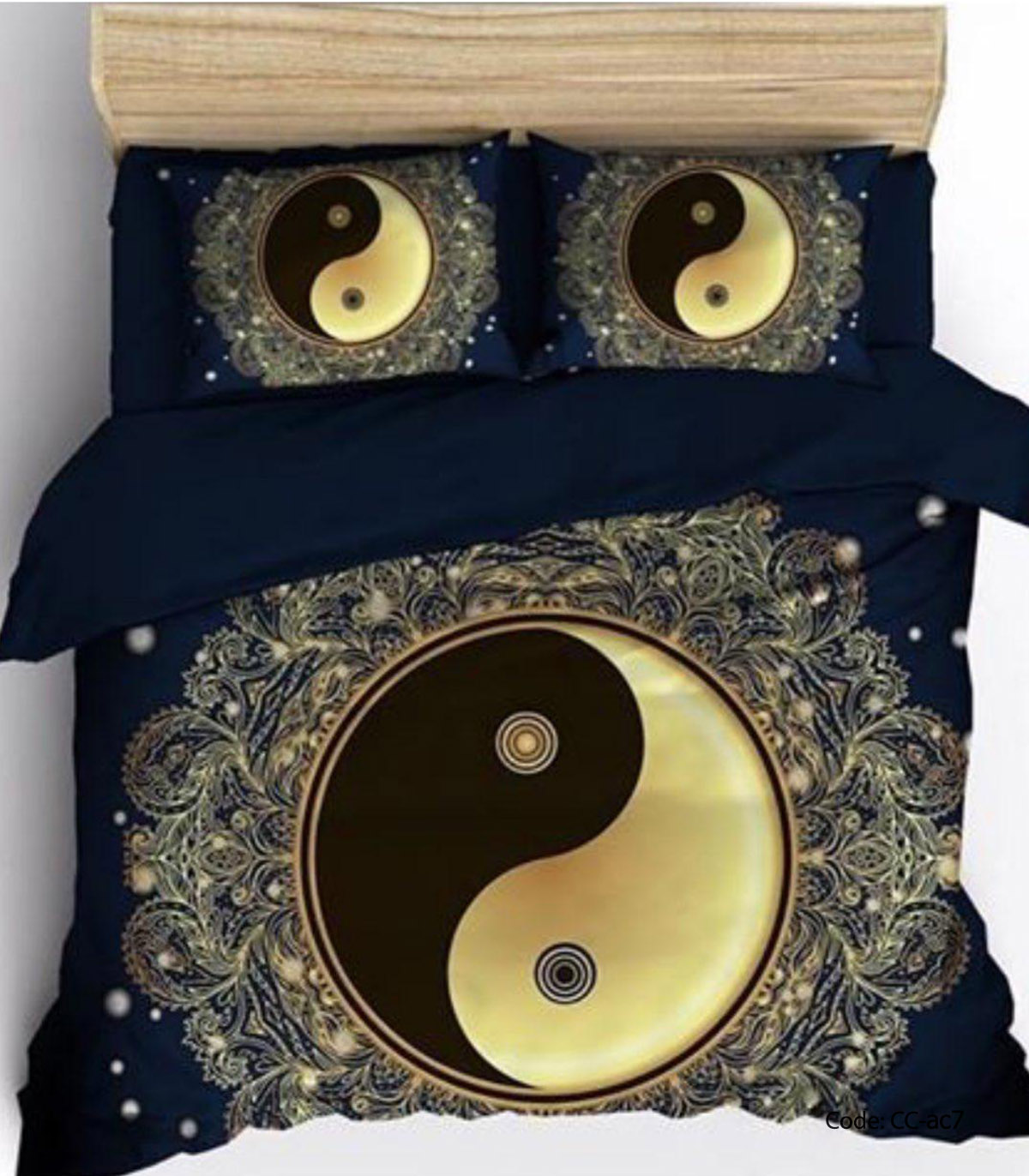 سرویس روتختی طرح یین و یانگ مشکی طلایی