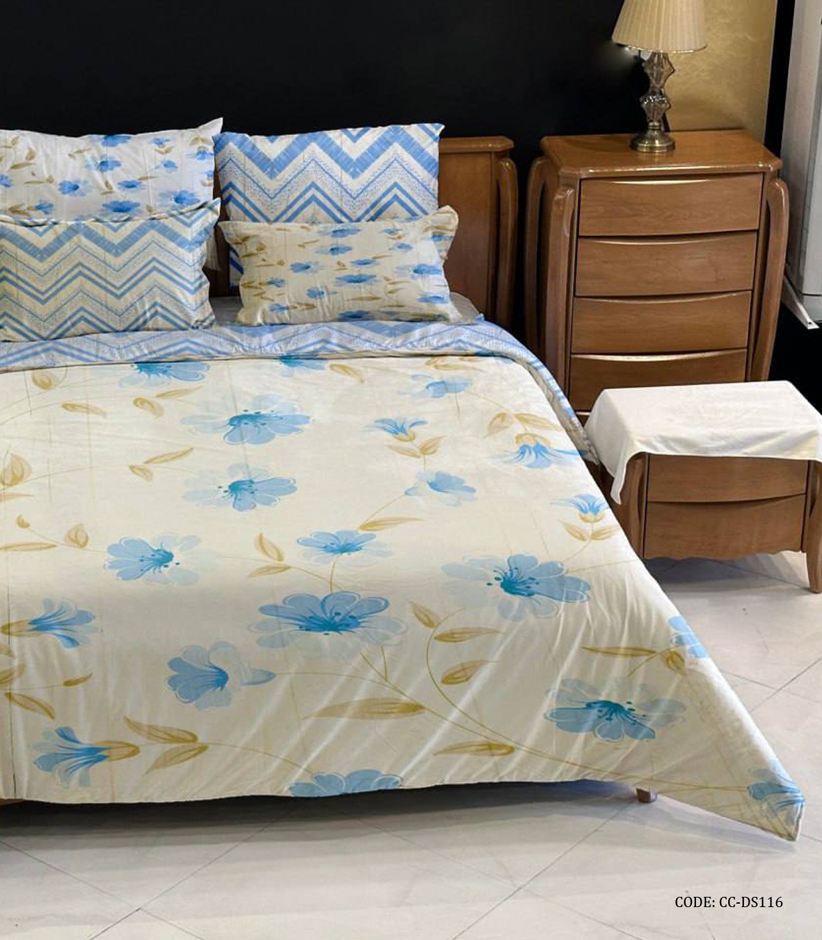 سرویس روتختی عروس دورو طرحدار کرم آبی مدل فرناز