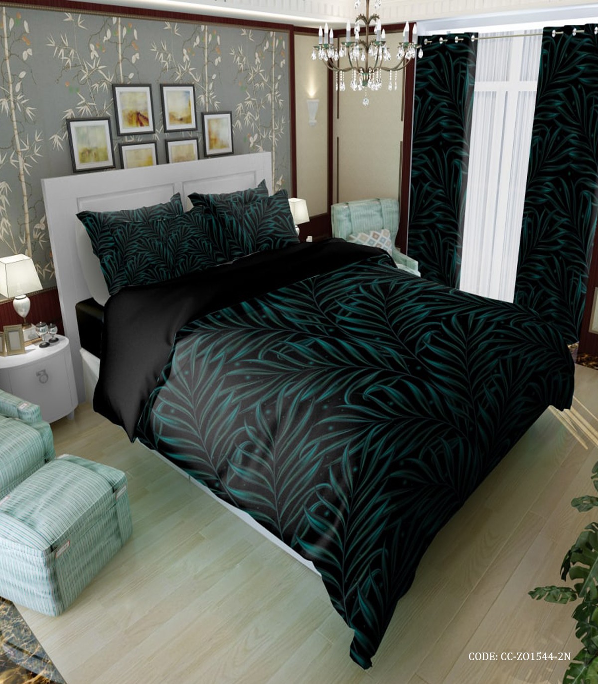 سرویس روتختی مشکی طرح هاوایی با برگ های بامبو