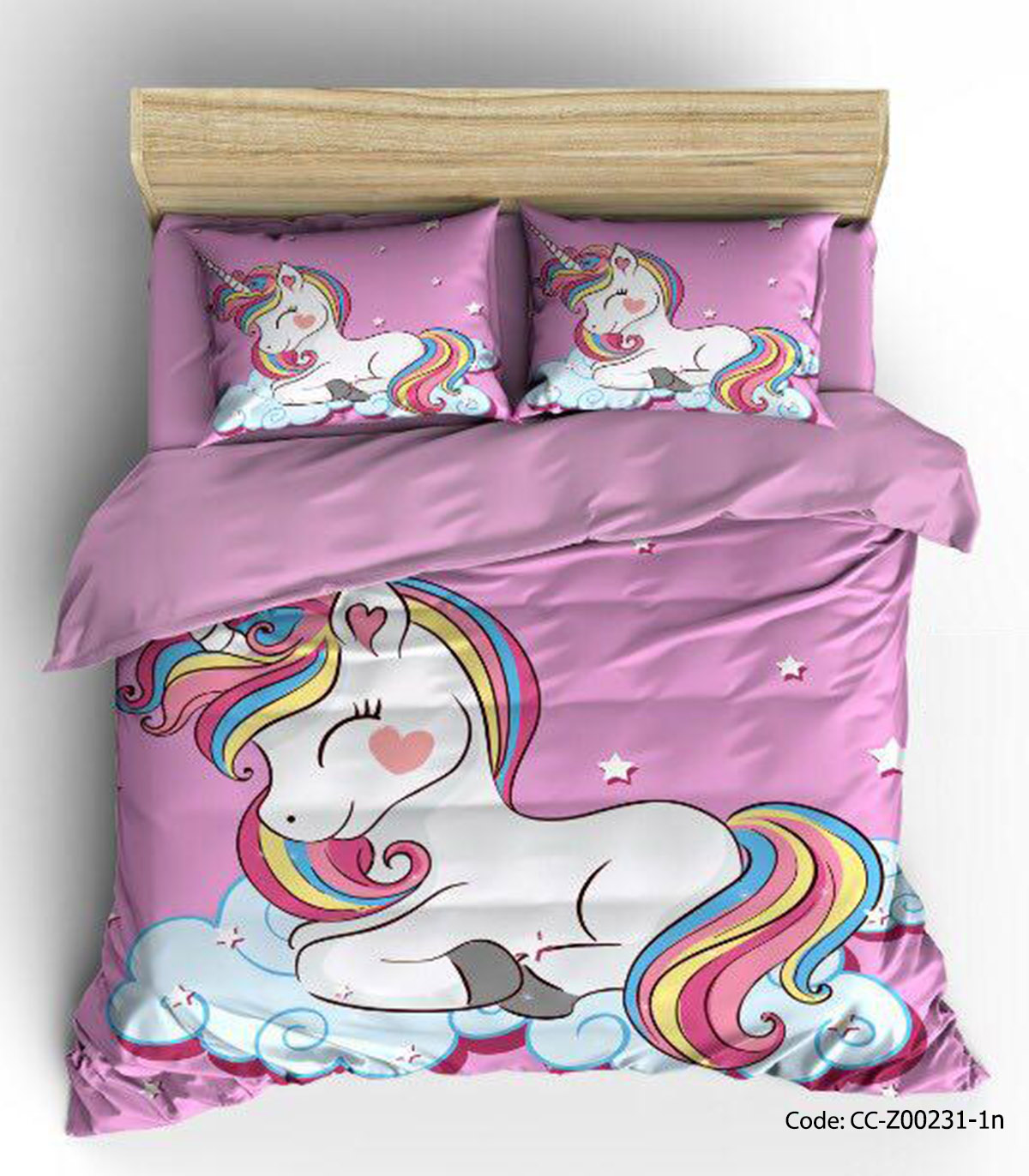 سرویس روتختی و ملحفه دخترانه مدل تک شاخ