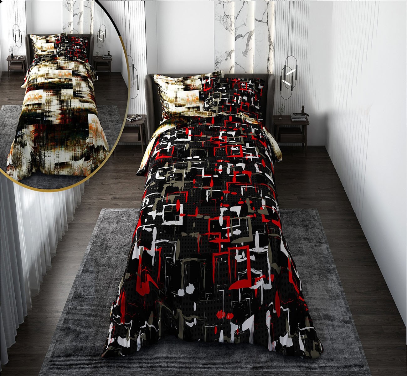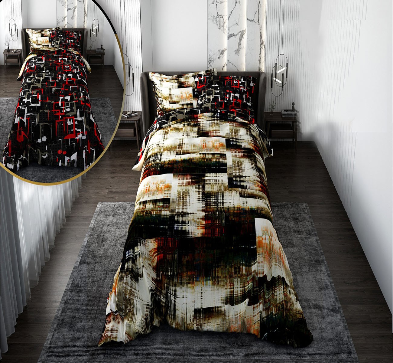 سرویس روتختی پسرانه با لحاف دو رویه طرح چهارخونه آبرنگی