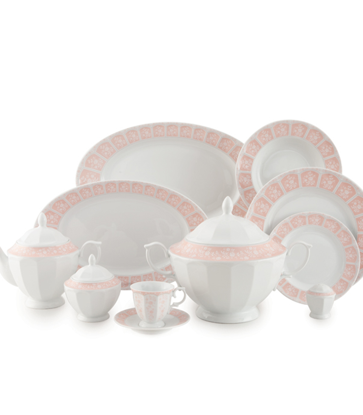 سرویس ظروف غذاخوری لوکس ۱۲ نفره طرح آرتمیس صورتی سری نئوکلاسیک