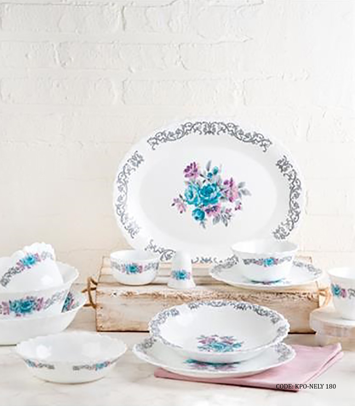 شامل | دیس -کاسه سالاد – بشقاب غذاخوری – بشقاب خورش خوری – پیش دستی – کاسه ماست خوری – نمک پاش |