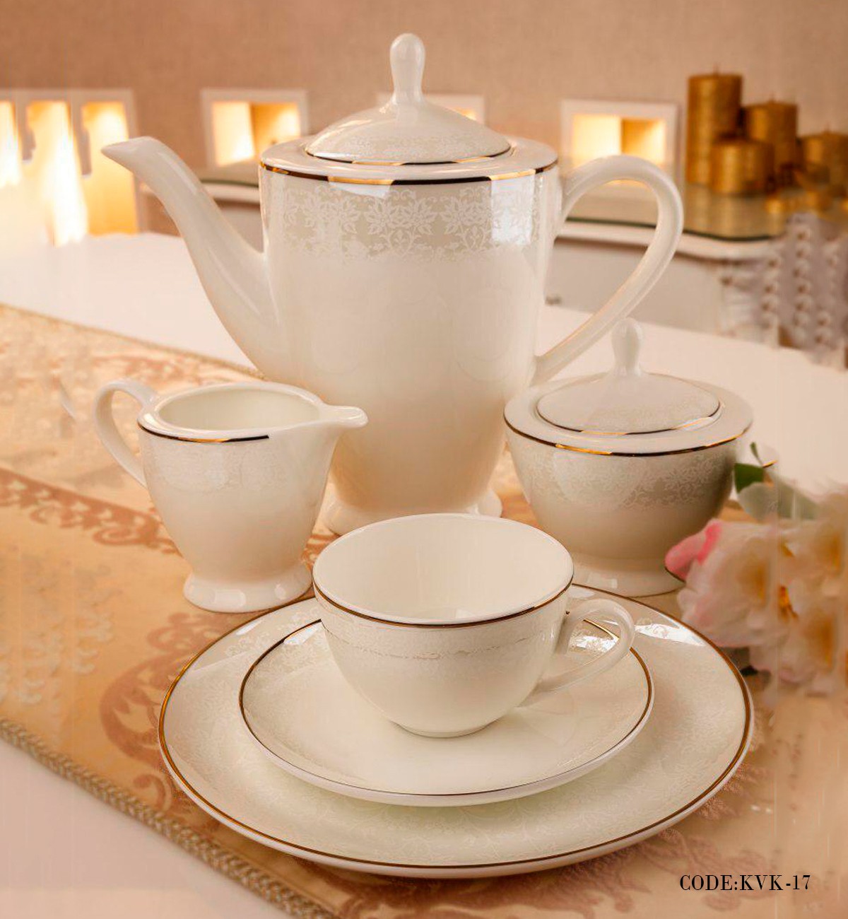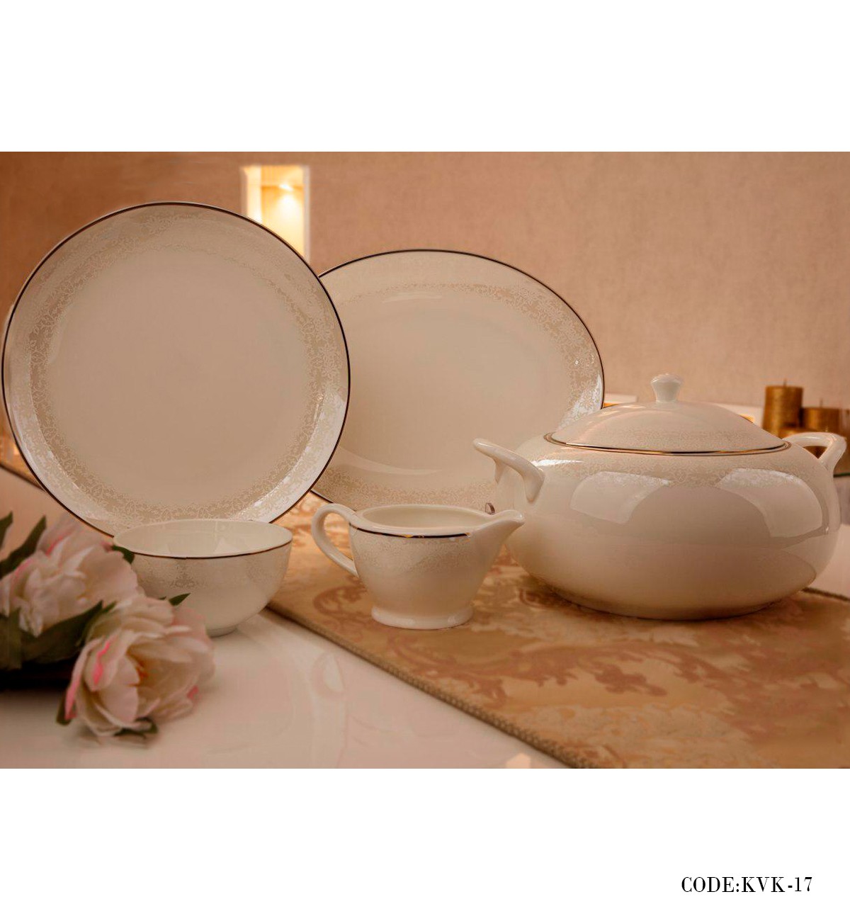 - شامل 18 عدد بشقاب پلوخوری، 18عدد بشقاب خورشت خوری، 18عدد بشقاب پیش دستی، 18 عدد پیاله، 2 عدد دیس بیضی بزرگ، 2 عدد دیس بیضی کوچک، 1عدد سس خوری، 1عدد کاسه بزرگ، 3 عدد نمکدان، 3 عدد فلفل پاش، یک عدد سوپ خوری همراه با در، 1عدد قوری همراه با درب، 12 عدد فنجان و نعلبکی، 6 عدد قهوه خوری و نعلبکی، 1عدد قندان همراه با درب، 1عدد شکرریز، 6 عدد حلقه دستمال