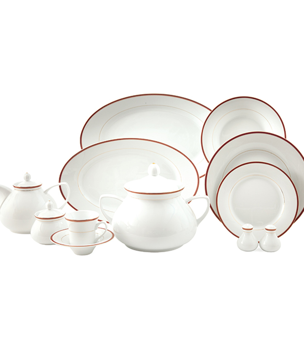 - شامل: 12عدد پلوخوری، 12عدد خورش خوری، 18عدد میوه خوری، 2عدد دیس بیضی کوچک، یک عدد دیس بیضی بزرگ، 12 عدد پیاله کوچک، 6 عدد پیاله بزرگ، 3 عدد کاسه آبگوشت خوری، 2عدد سالاد خوری، 12عدد فنجان، 12عدد نعلبکی، یک عدد سوپ خوری همراه با درپوش، 6عدد نمک پاش، یک عدد قوری همراه با درپوش، یک عدد قندان همراه با درپوش، 2 عدد شیرخوری یا شکر ریز