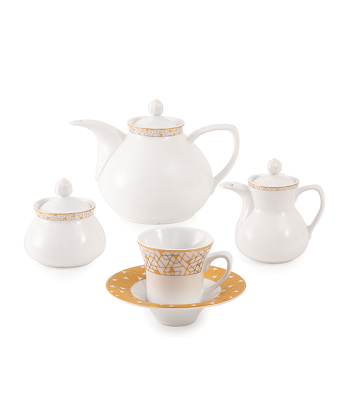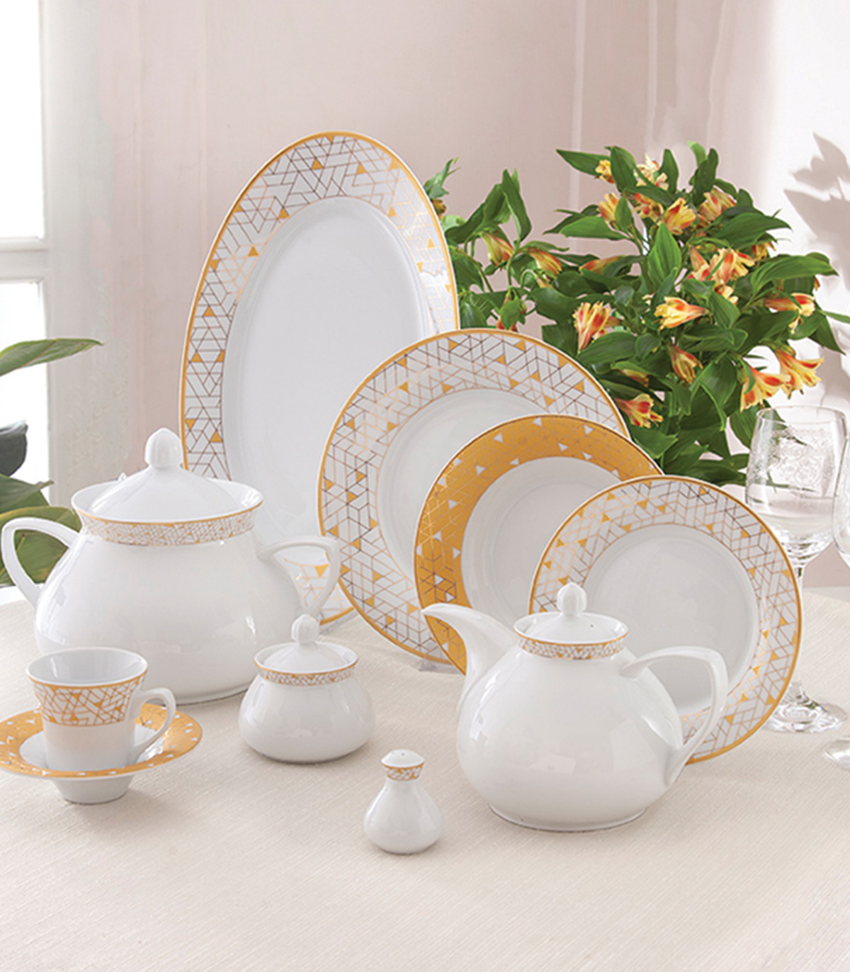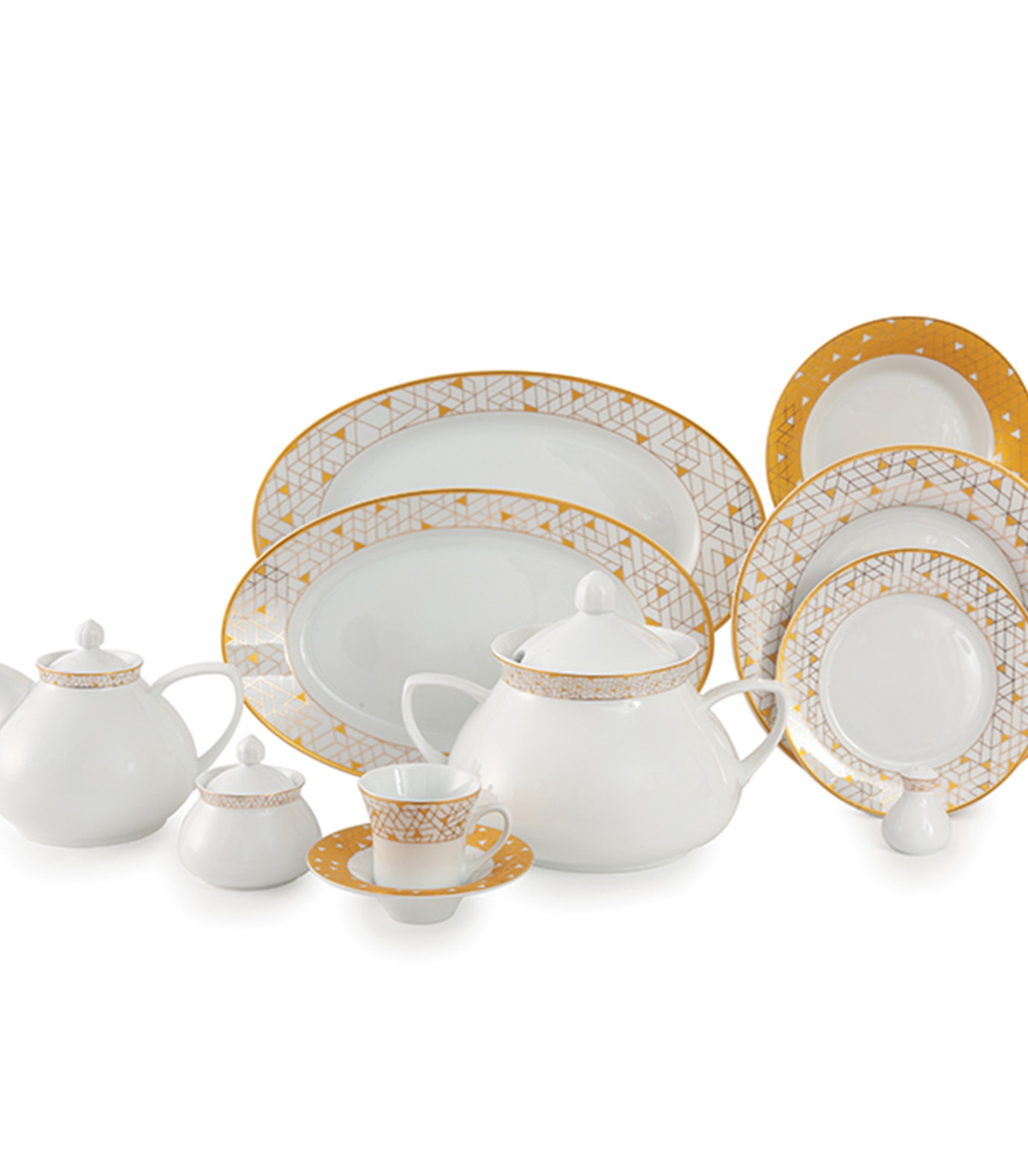 سرویس غذاخوری چینی ۱۲نفره ۱۰۸ پارچه مدل ژئومتریکال طلایی سری شهرزاد