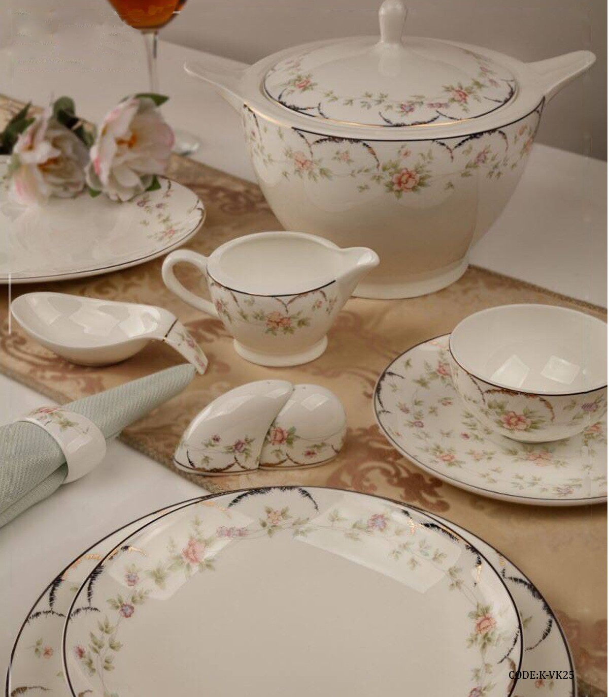 - شامل 18عدد پلوخوری، 18عدد خورش خوری، 18عدد میوه خوری (پیش دستی)، 18عدد پیاله، 2عدد دیس بیضی بزرگ، 1عدد سس خوری، 1عدد کاسه بزرگ، 3عدد نمکدان، 3عدد فلفل پاش، 2عدد دیس بیضی کوچک، یک عدد سوپ خوری همراه با در، 1عدد قوری همراه با در، 12عدد فنجان و نعلبکی، 6عدد قهوه خوری و نعلبکی، 1عدد قندان همراه با در، 1عدد شکرریز، 6عدد حلقه دستمال، 1عدد سس خوری