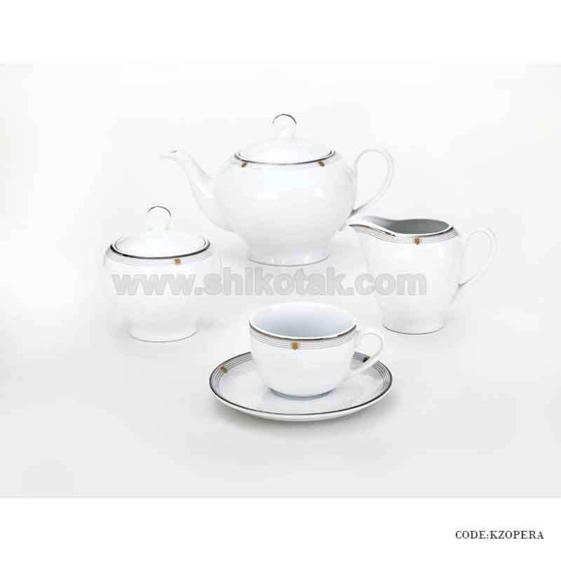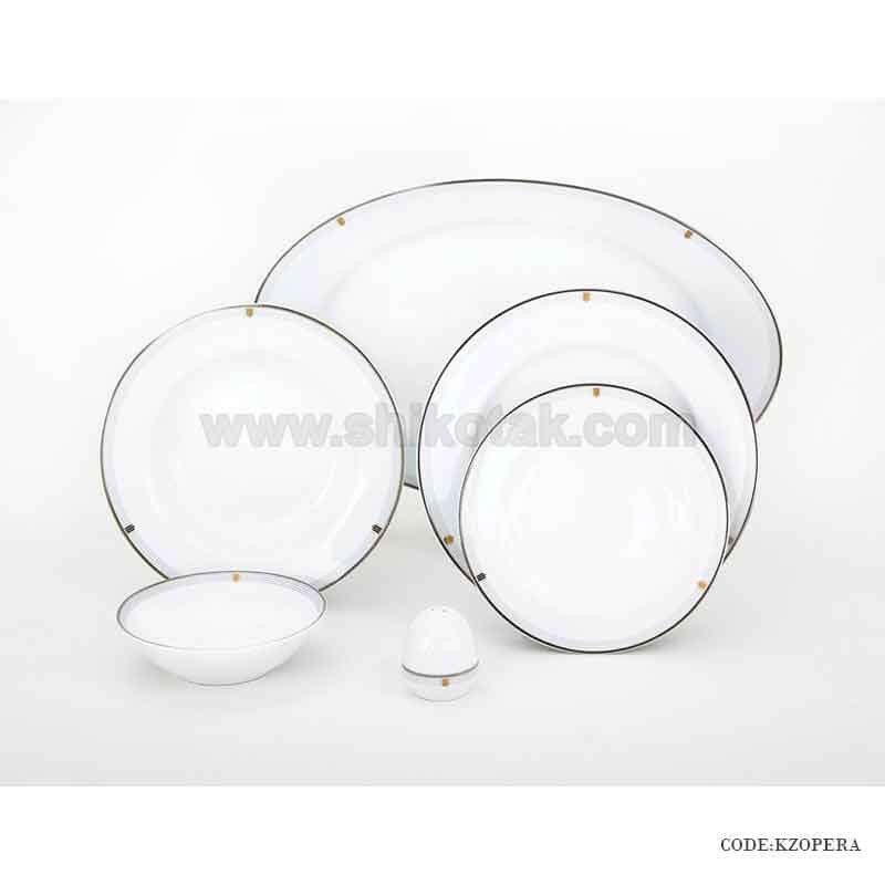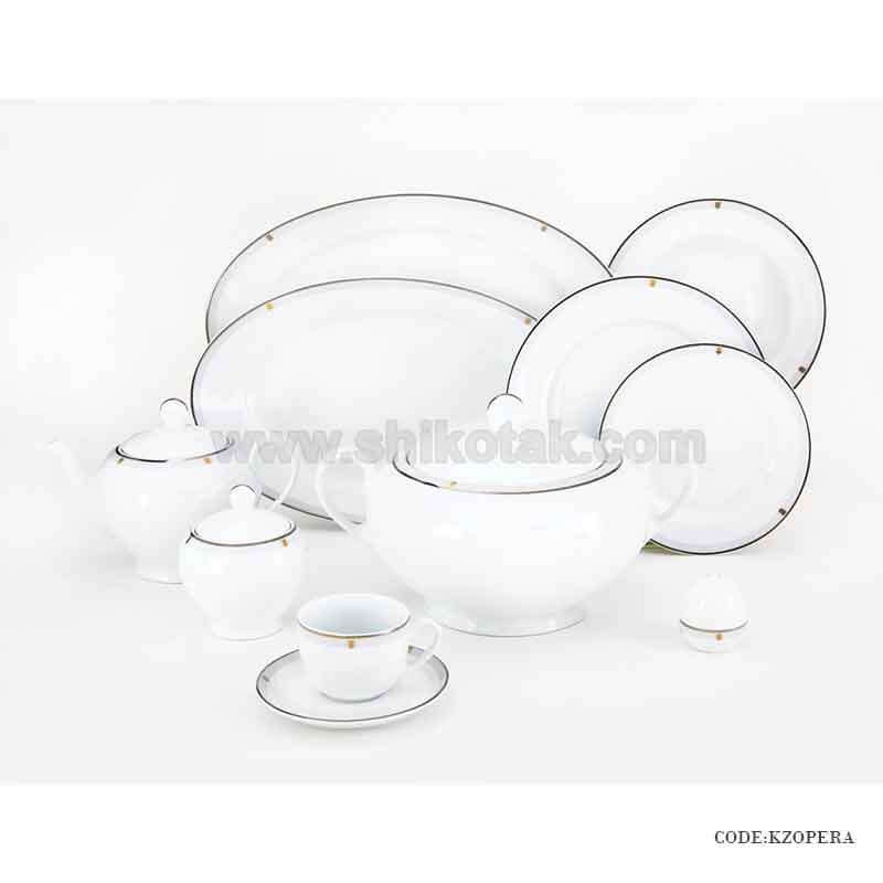 شامل | 6عدد پلوخوری، 6عدد خورش خوری، 6عدد میوه خوری، یک عدد دیس بیضی کوچک، یک عدد دیس بیضی بزرگ، 6عدد سالاد خوری کوچک، 2عدد نمک پاش |