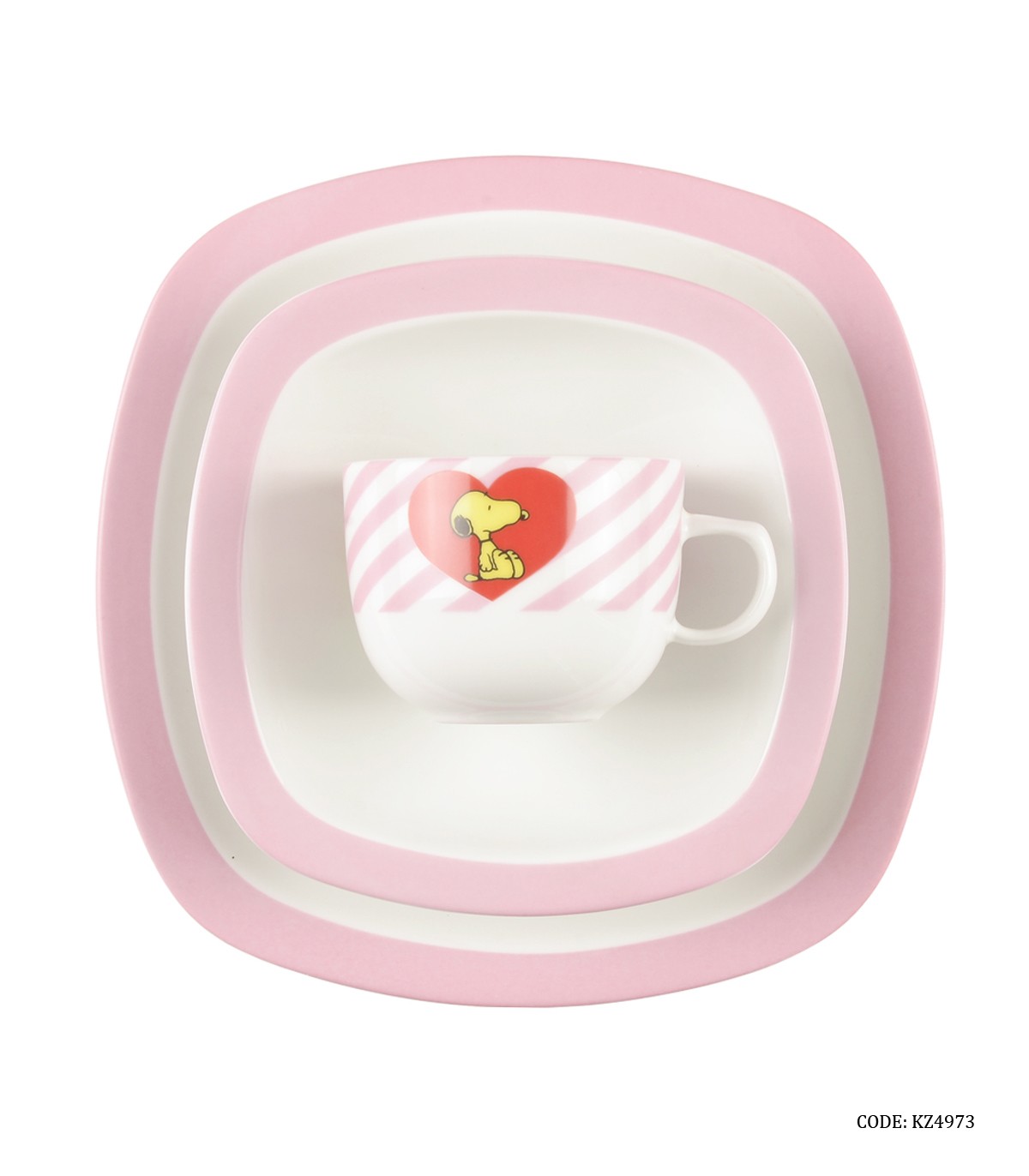 سرویس غذا خوری چینی کودک طرح اسنوپی صورتی زرین