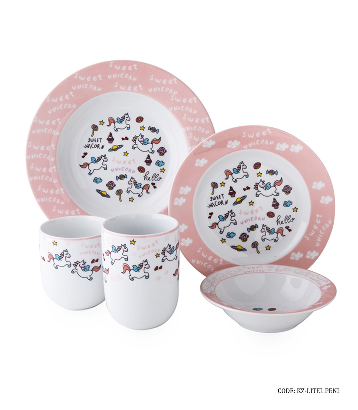 سرویس غذا خوری کودک دختر چینی زرین طرح اسب تک شاخ مدل لیتل پونی
