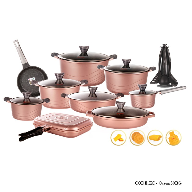 ست قابلمه گرانیتی ۳۰ پارچه مدل اوشن رزگلد