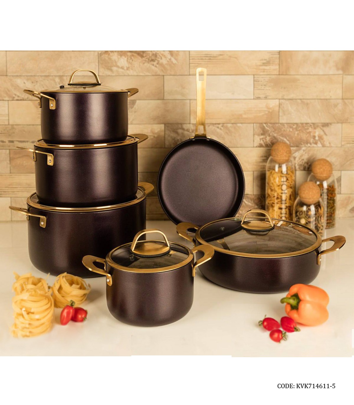 سرویس قابلمه گرانیتی ۱۱ پارچه دسته طلایی ویراکیش مدل سورنا