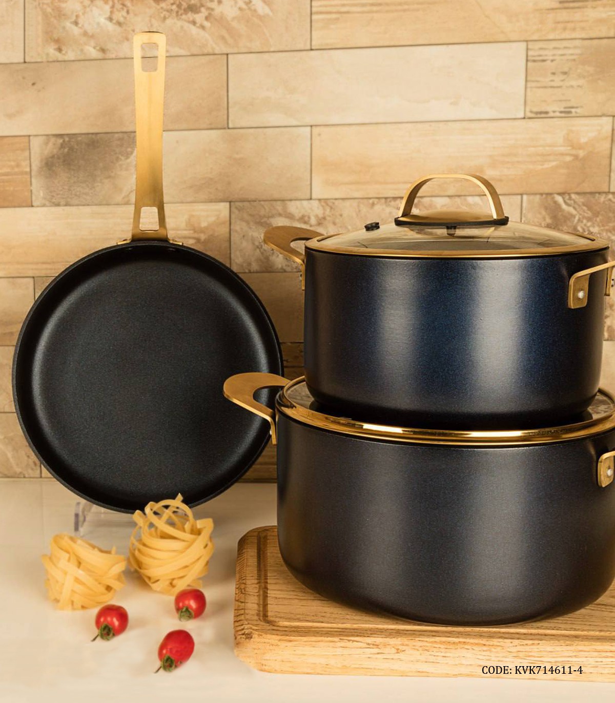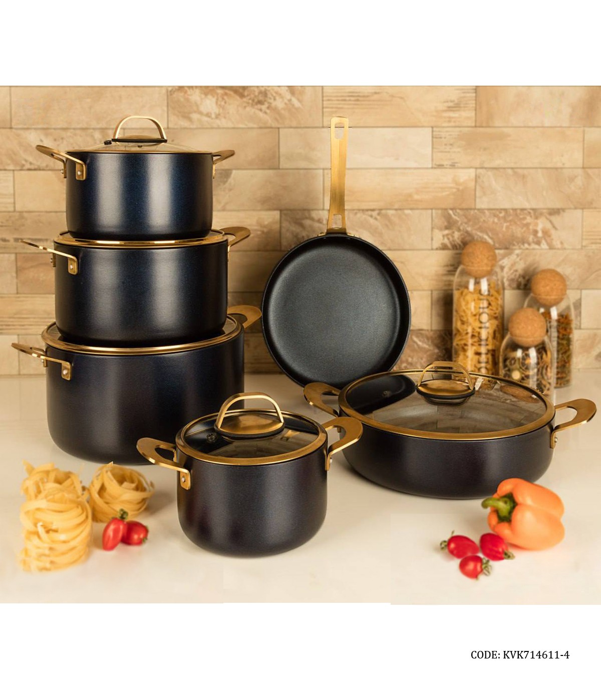 سرویس قابلمه گرانیتی ۱۱ پارچه ویراکیش سورمه ای طلایی مدل سورنا