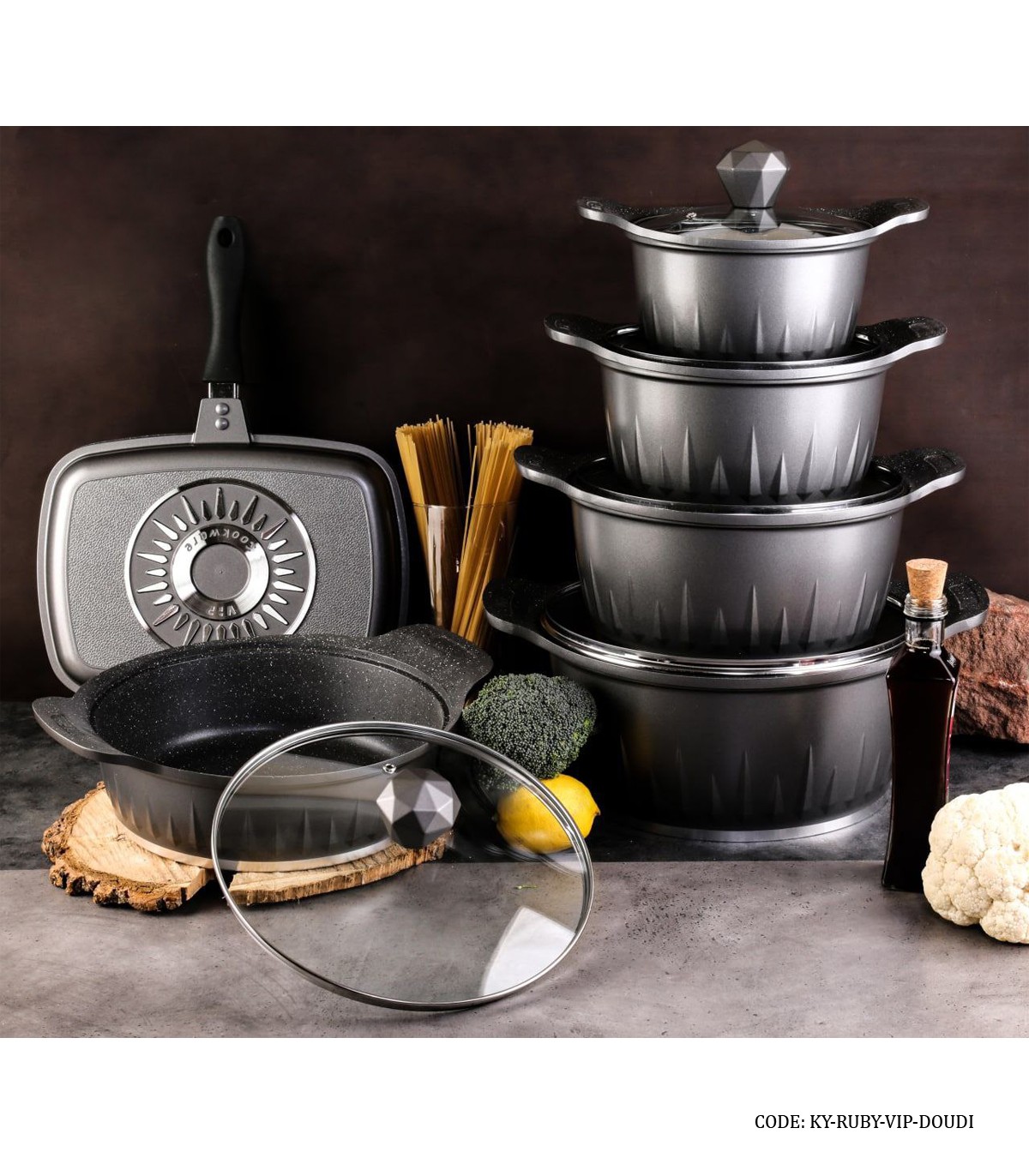 سرویس قابلمه گرانیتی ۱۱ پارچه VIP رنگ دودی