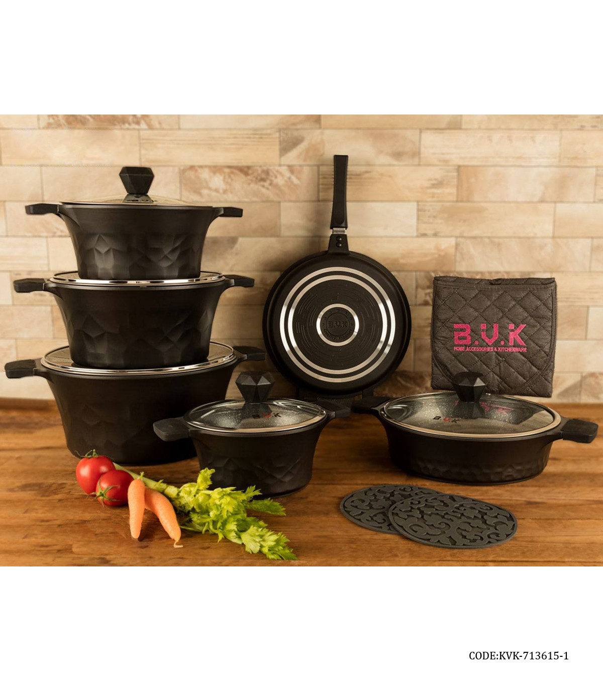 سرویس قابلمه گرانیتی ۱۵ پارچه مشکی