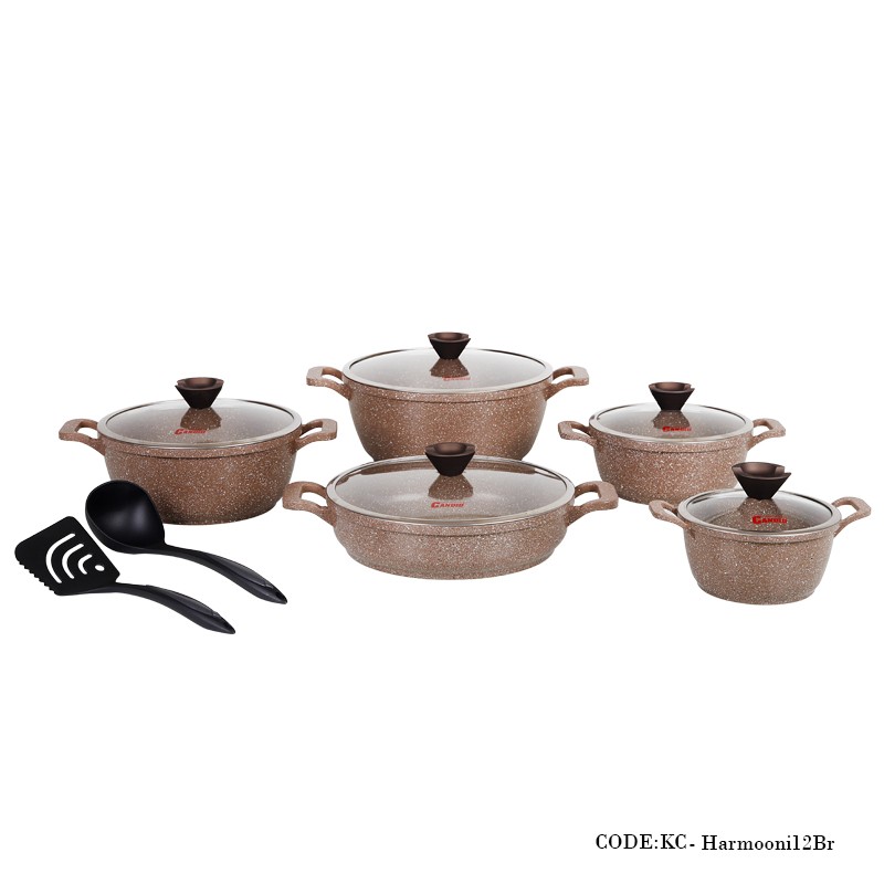 سرویس قابلمه گرانیتی ۱۲ پارچه مدل هارمونی دورو قهوه ای