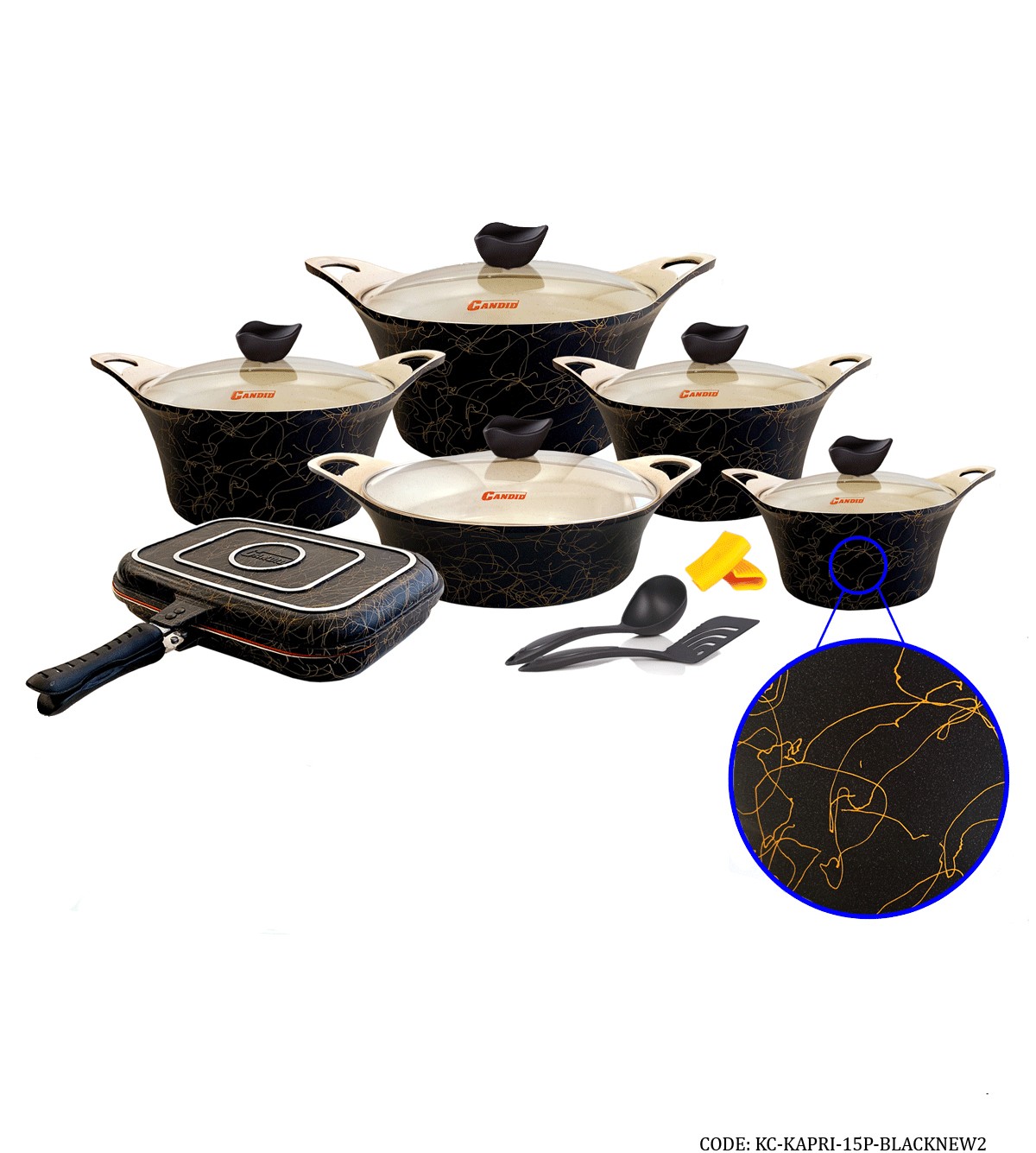 سرویس قابلمه ۱۵ پارچه گرانیتی کاپری مدل ماربل