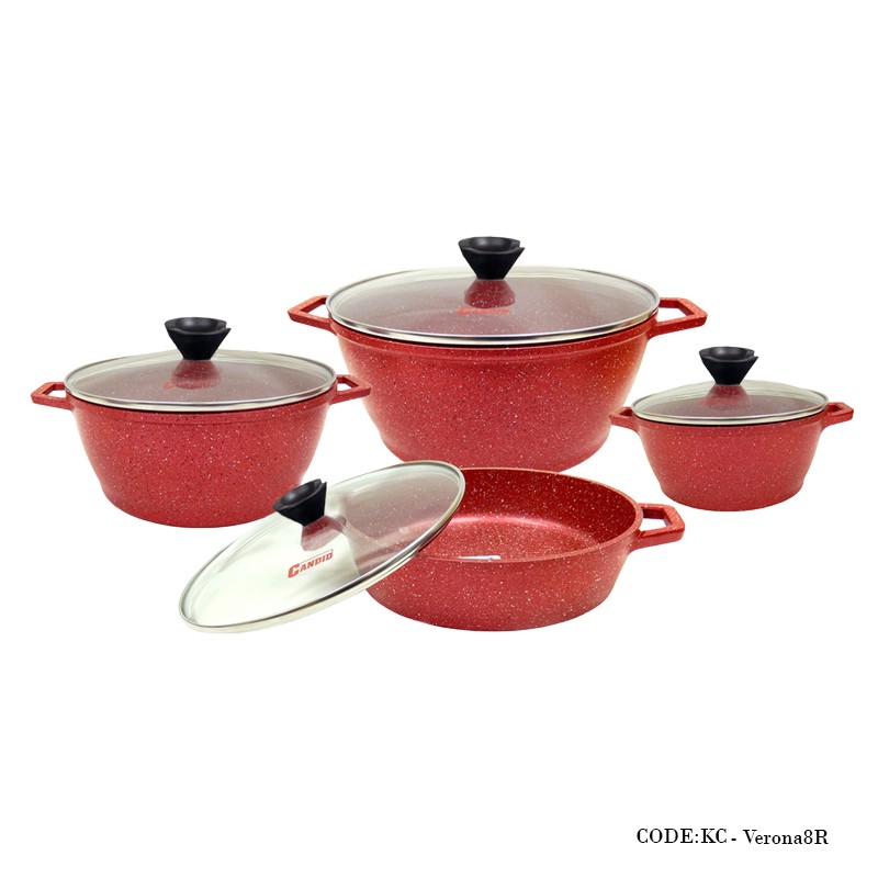 سرویس قابلمه گرانیتی ۸ پارچه مدل ورونا قرمز