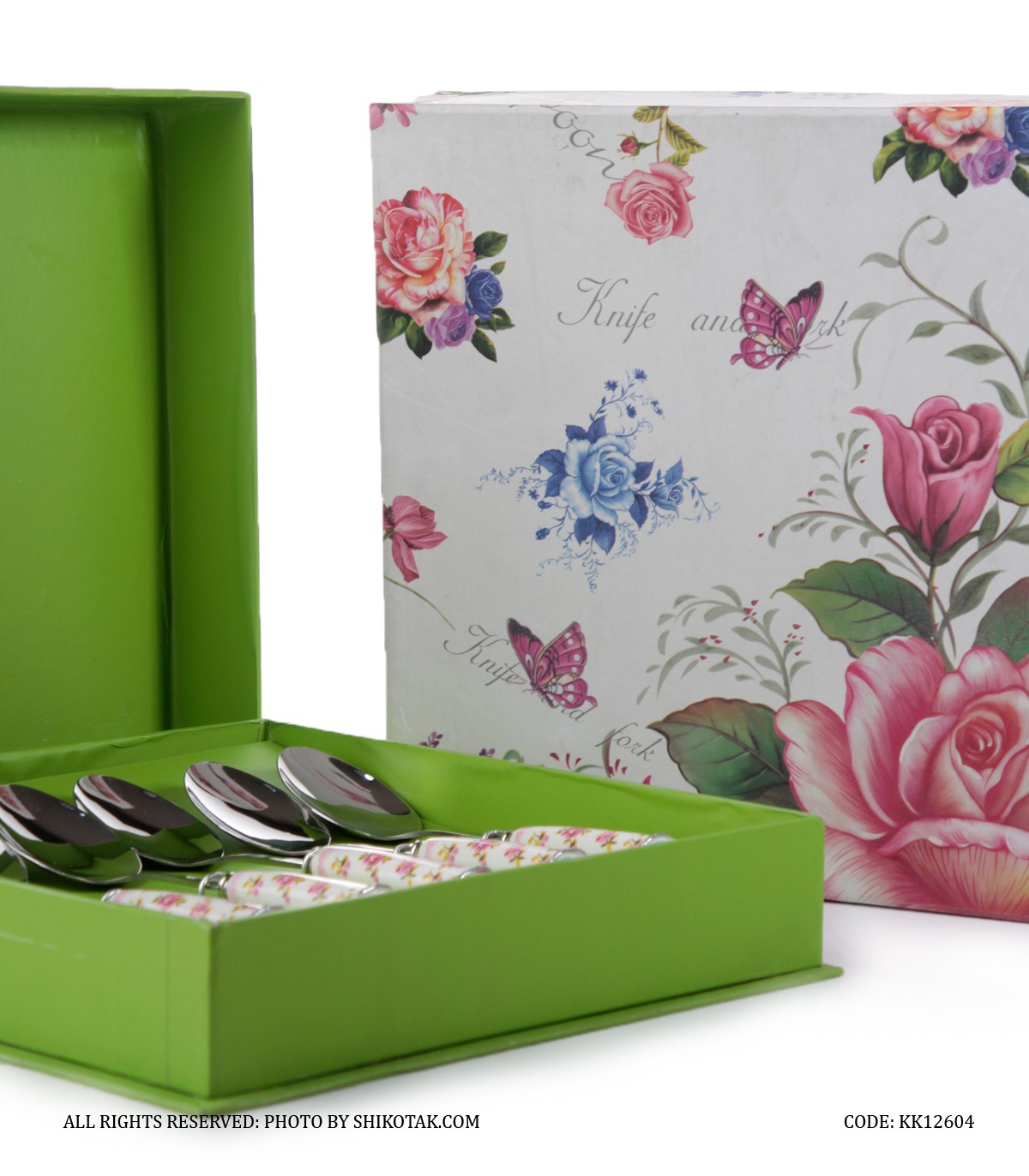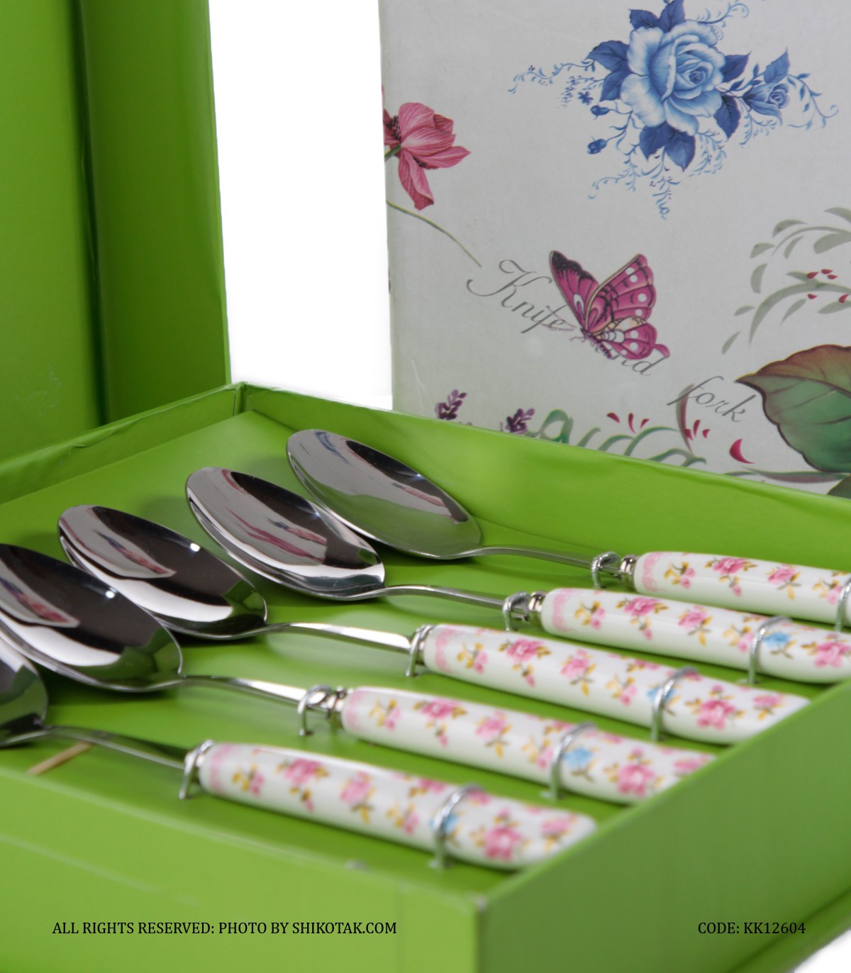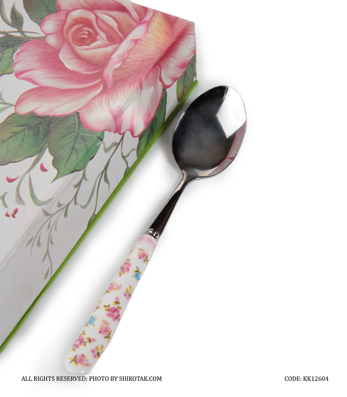 ست قاشق غذاخوری طرح گلگلی صورتی شش عددی