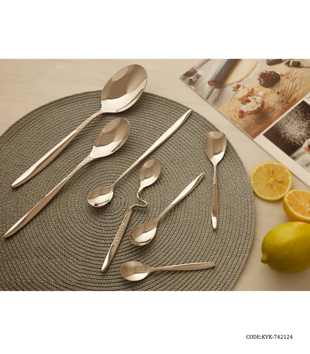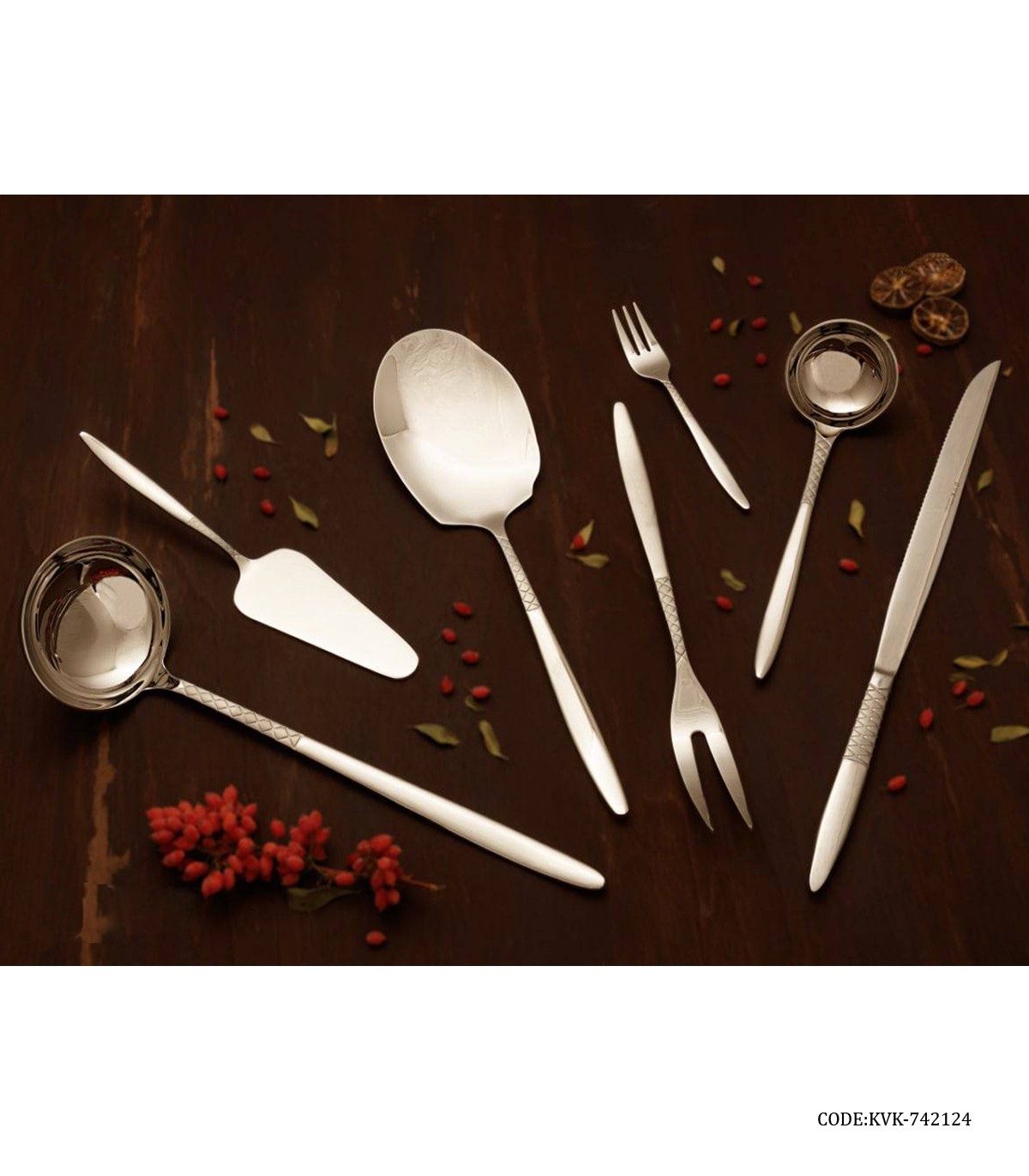 - 24 عدد قاشق غذاخوری، 24 عدد چنگال غذا خوری، 12 عدد کار میوه خوری، 12 عدد چنگال میوه خوری، 3 عدد کارد استیک، 12 عدد قاشق شربت خوری، 2 عدد قاشق عسل خوری، 6 عدد قاشق بستنی خوری، 12 عدد قاشق مربا خوری، 12 عدد قاشق چای خوری، 1 عدد کارد بره، 1 عدد چنگال بره، 1 عدد کفگیر کیک، 2 عدد انبر سالاد، 1عدد انبر یخ، 4 عدد کفگیر، 2 عدد ملاقه بزرگ، 2 عدد ملاقه کوچک، 2 عدد قاشق خورشت