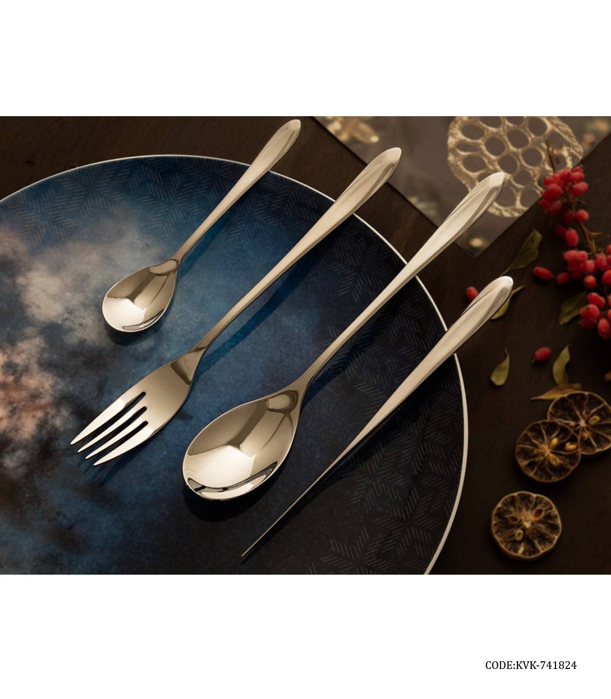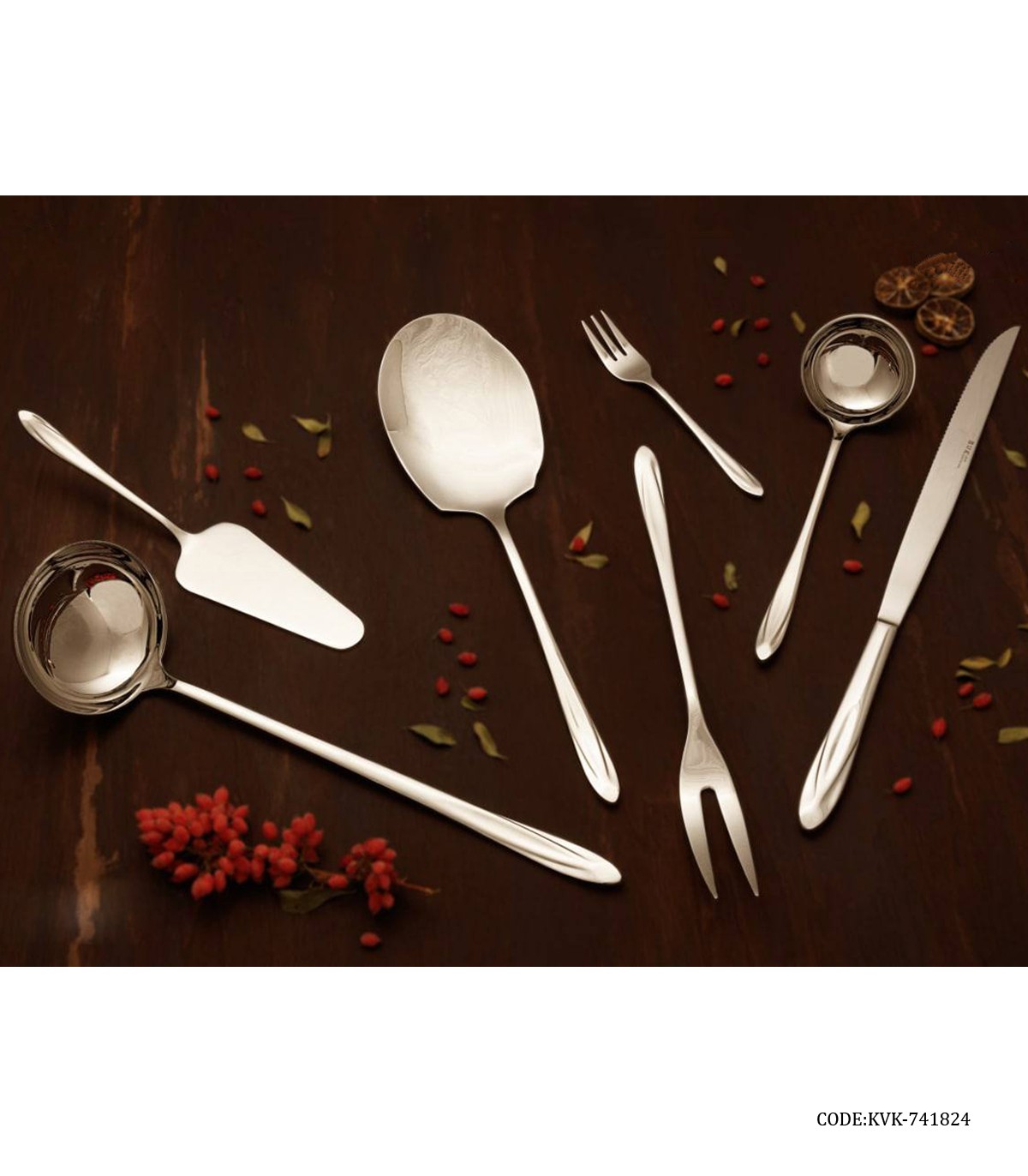 - 24 عدد قاشق غذاخوری، 24 عدد چنگال غذا خوری، 12 عدد کار میوه خوری، 12 عدد چنگال میوه خوری، 3 عدد کارد استیک، 12 عدد قاشق شربت خوری، 2 عدد قاشق عسل خوری، 6 عدد قاشق بستنی خوری، 12 عدد قاشق مربا خوری، 12 عدد قاشق چای خوری، 1 عدد کارد بره، 1 عدد چنگال بره، 1 عدد کفگیر کیک، 2 عدد انبر سالاد، 1عدد انبر یخ، 4 عدد کفگیر، 2 عدد ملاقه بزرگ، 2 عدد ملاقه کوچک، 2 عدد قاشق خورشت