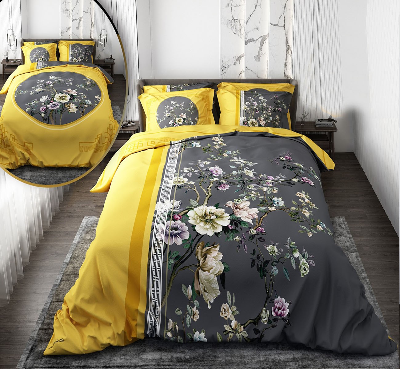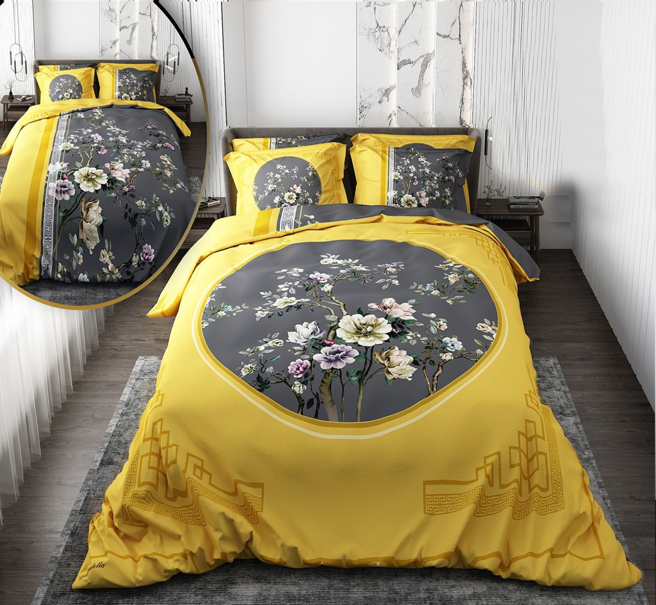 سرویس لحاف روتختی دو نفره طوسی زرد دورو طرح گل مدل استلا