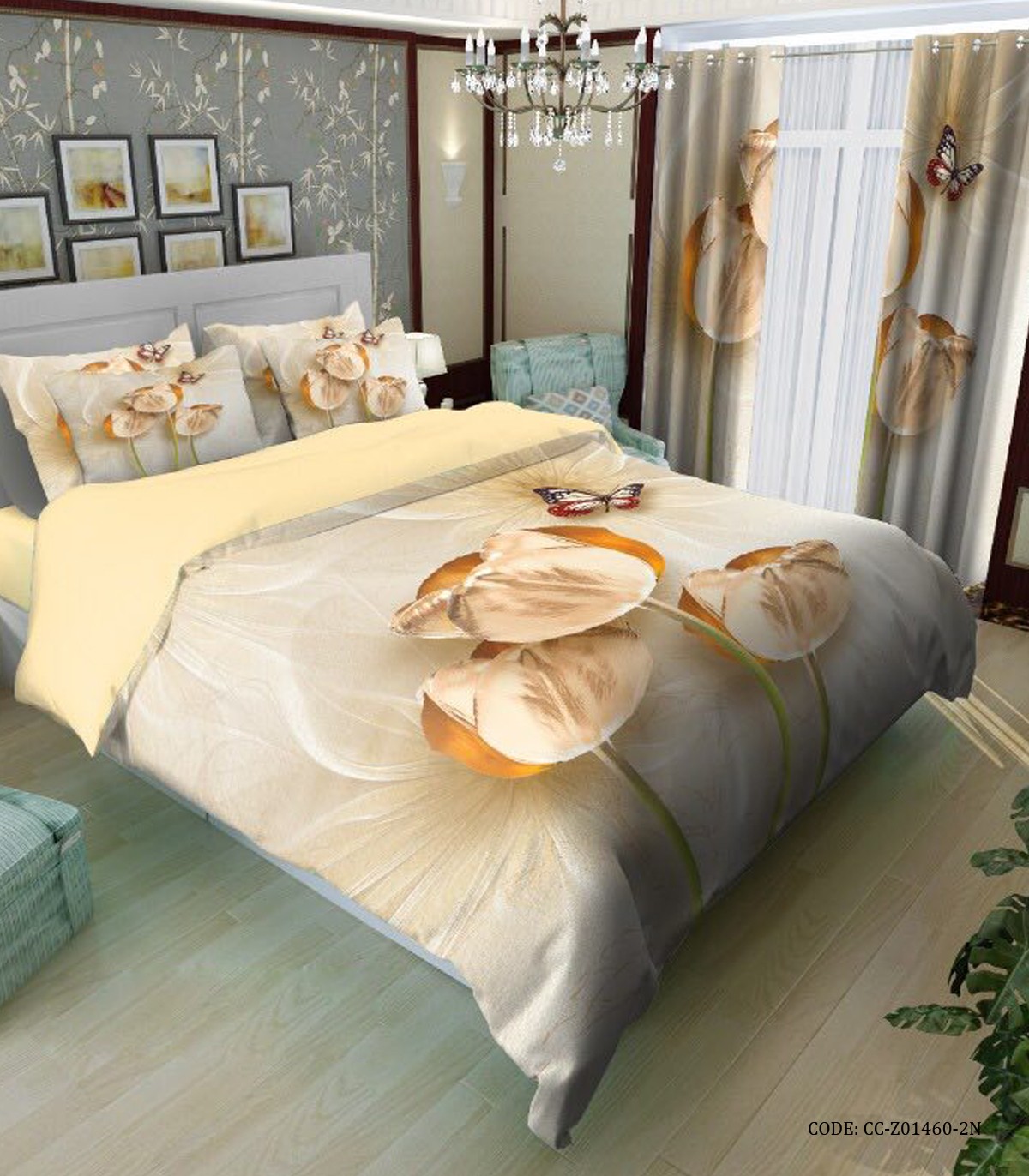 سرویس لحاف روتختی کرم نسکافه ای طرح گل لاله مدل آینور