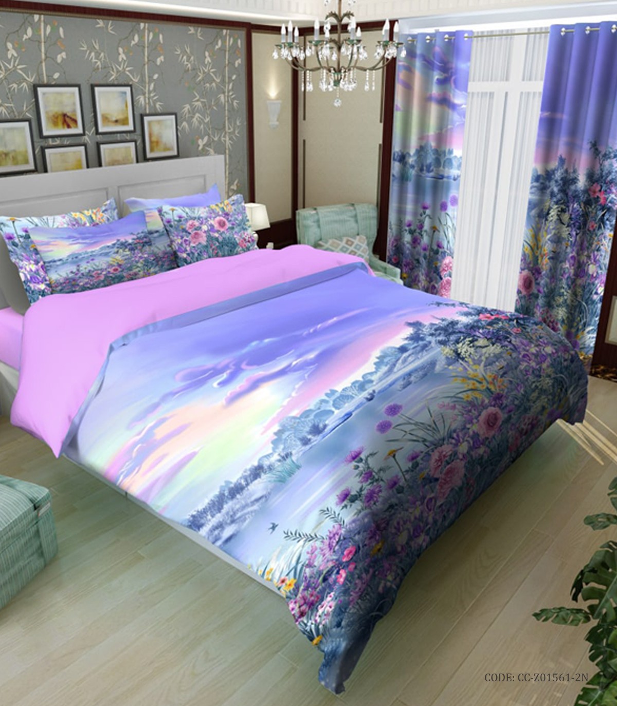 سرویس لحاف روتختی یاسی بنفش طرح دشت گل