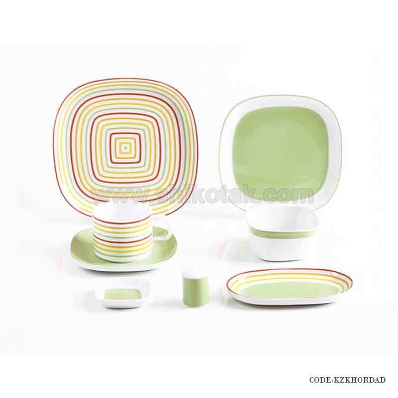 شامل | 1عدد بشقاب خورش خوری،1عدد بشقاب پلوخوری، 1عدد بشقاب میوه خوری، 1عدد سالاد خوری، 1عدد فنجان، 1عدد نعلبکی، 1عدد نمکدان 1عدد کاسه کاسه کوچک |