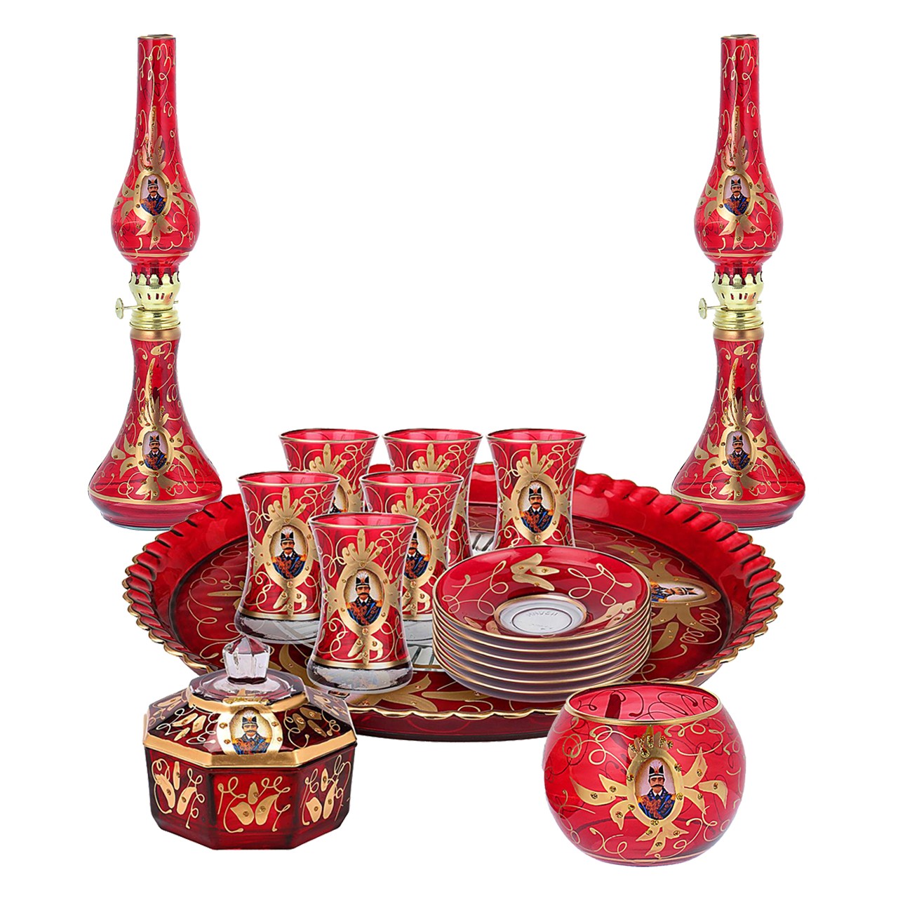 سرویس چایی خوری شاه عباسی ۱۷ پارچه قرمز طلایی