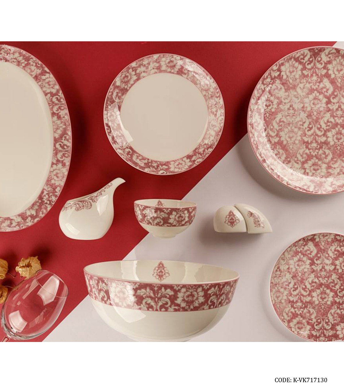 - شامل 6عدد پلوخوری، 6عدد خورش خوری، 6عدد میوه خوری (پیش دستی)، 6عدد پیاله، 1عدد دیس بزرگ، 1عدد نمکدان، 1عدد فلفل پاش، 1عدد کاسه بزرک سالاد خوری، 1عدد سس خوری