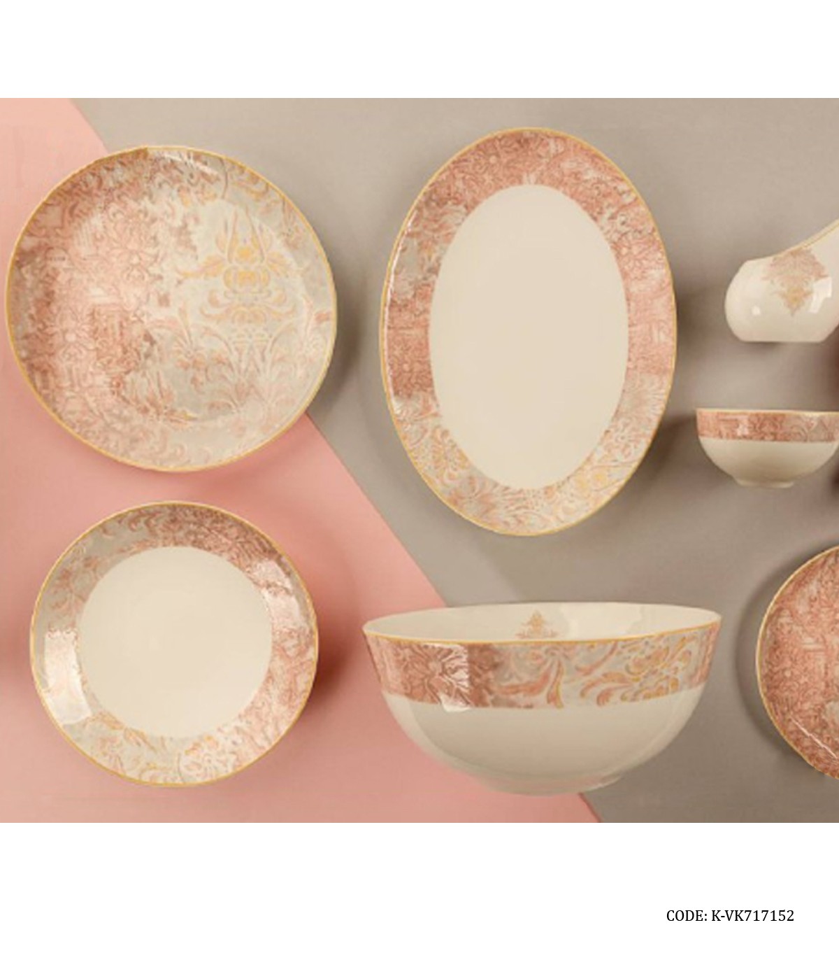 - شامل 6عدد پلوخوری، 6عدد خورش خوری، 6عدد میوه خوری (پیش دستی)، 6عدد پیاله، 1عدد دیس بزرگ، 1عدد نمکدان، 1عدد فلفل پاش، 1عدد کاسه بزرک سالاد خوری، 1عدد سس خوری