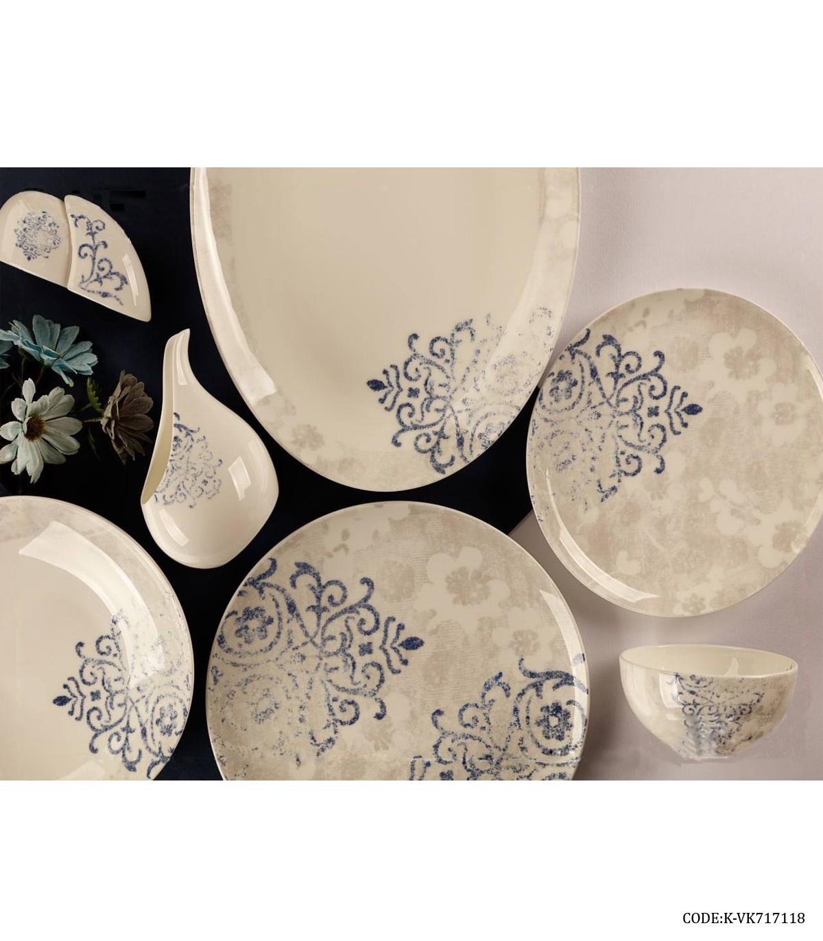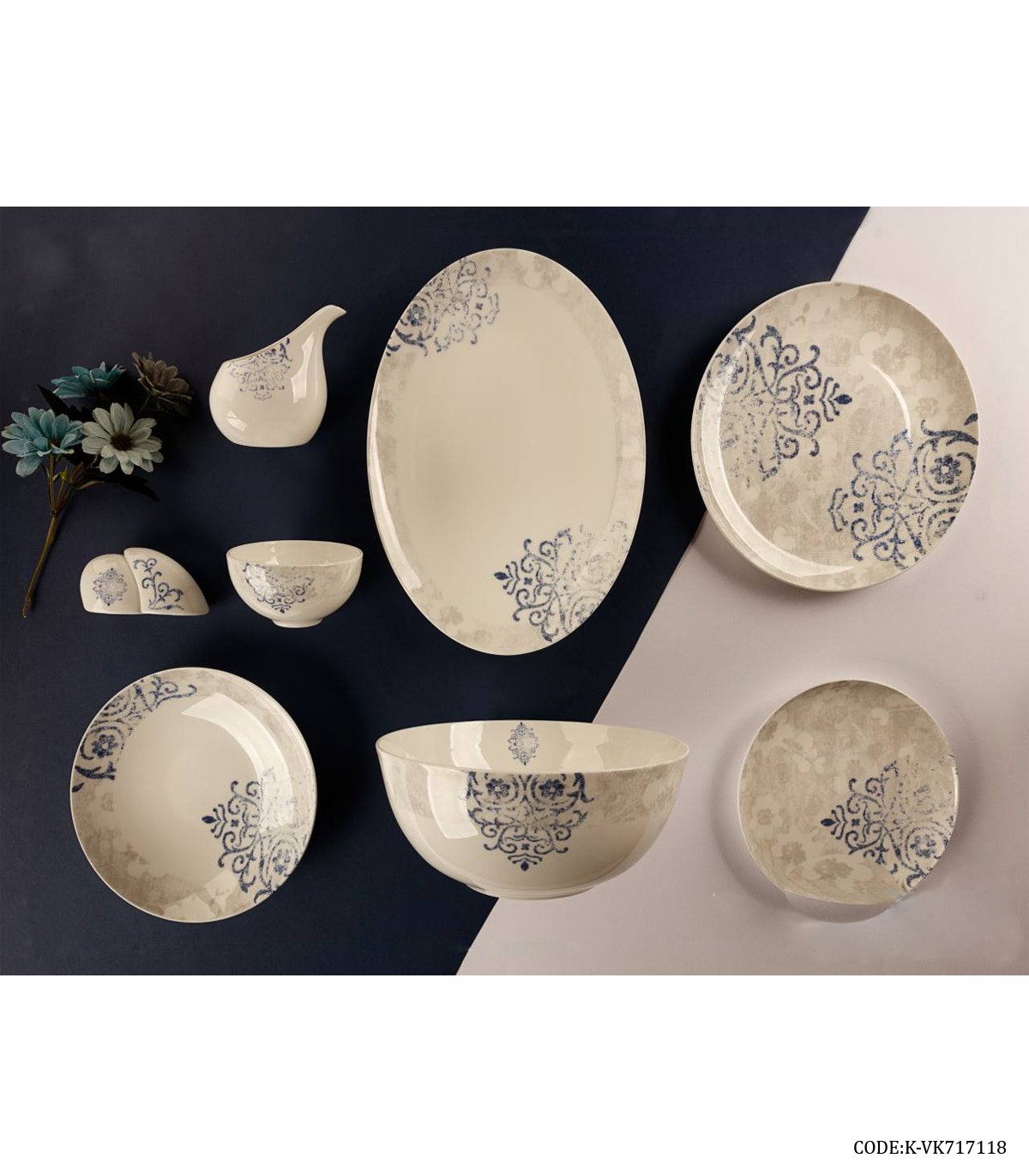 سرویس چینی شش نفره ۲۹ پارچه برگ سرمه ای مدل ۷۱۷۱۱۸