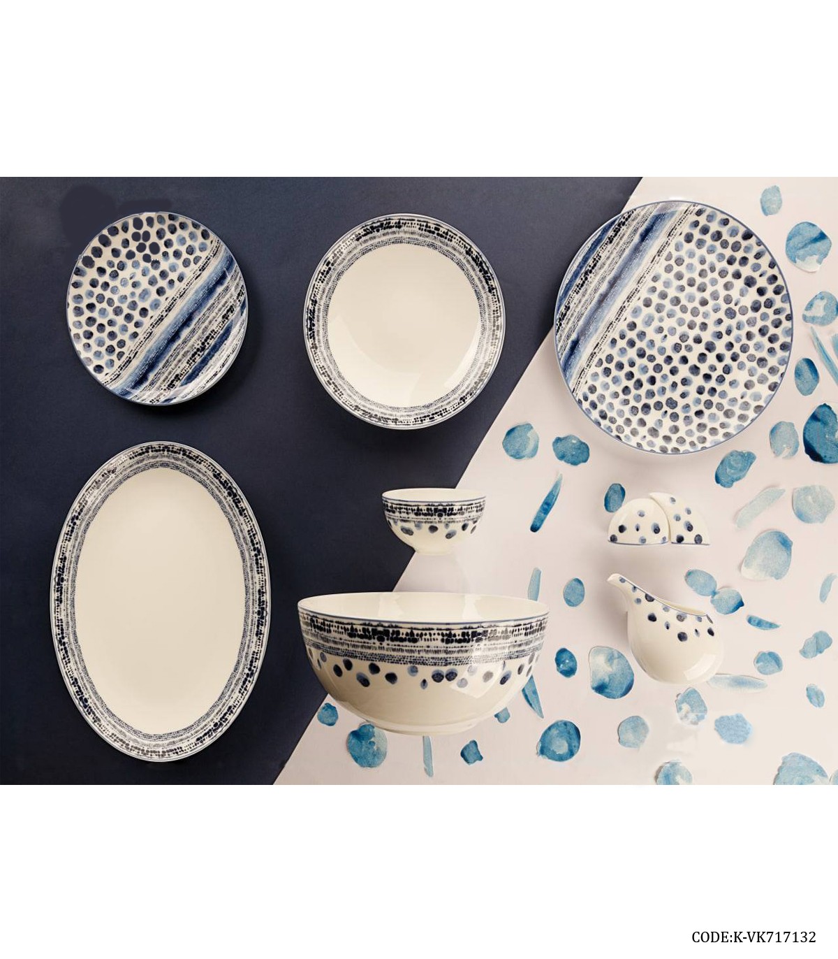 سرویس چینی شش نفره ۲۹ پارچه طرح سنگ آبی مدل ۷۱۷۱۳۲
