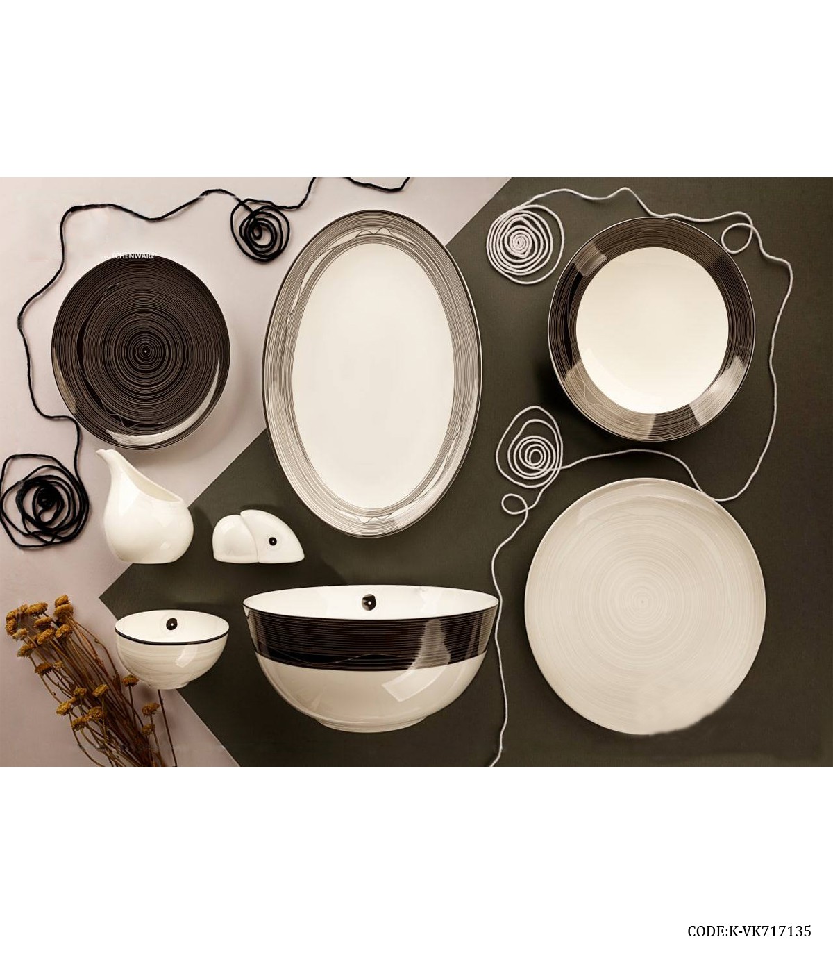 سرویس چینی شش نفره ۲۹ پارچه طرح مشکی مدل ۷۱۷۱۳۵
