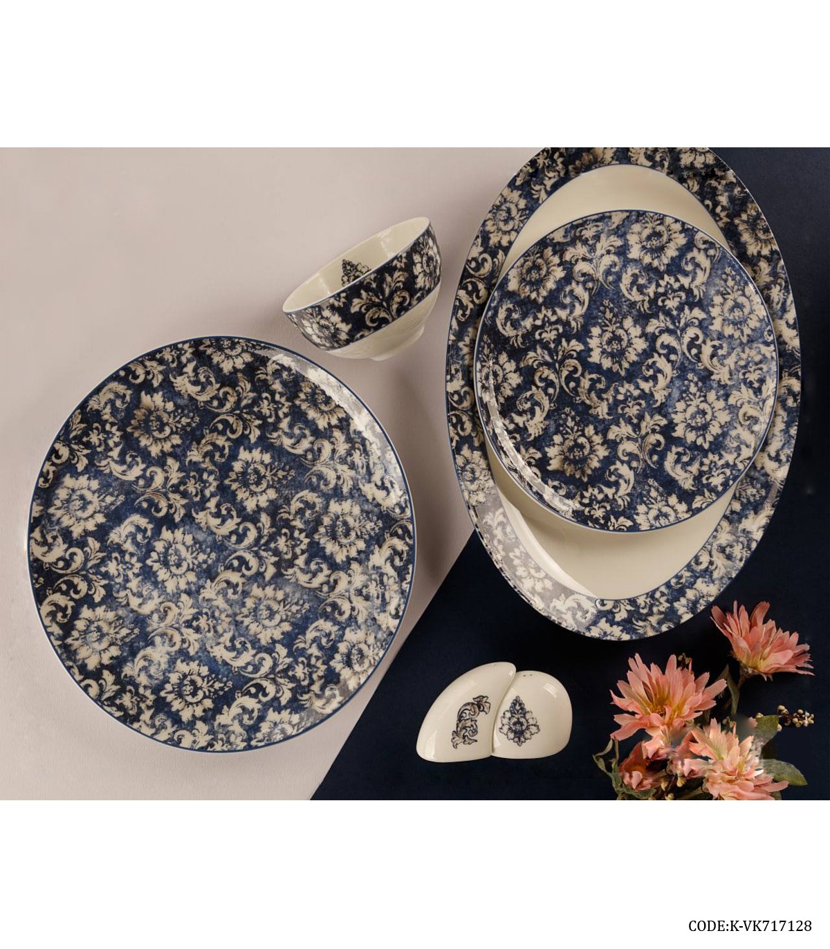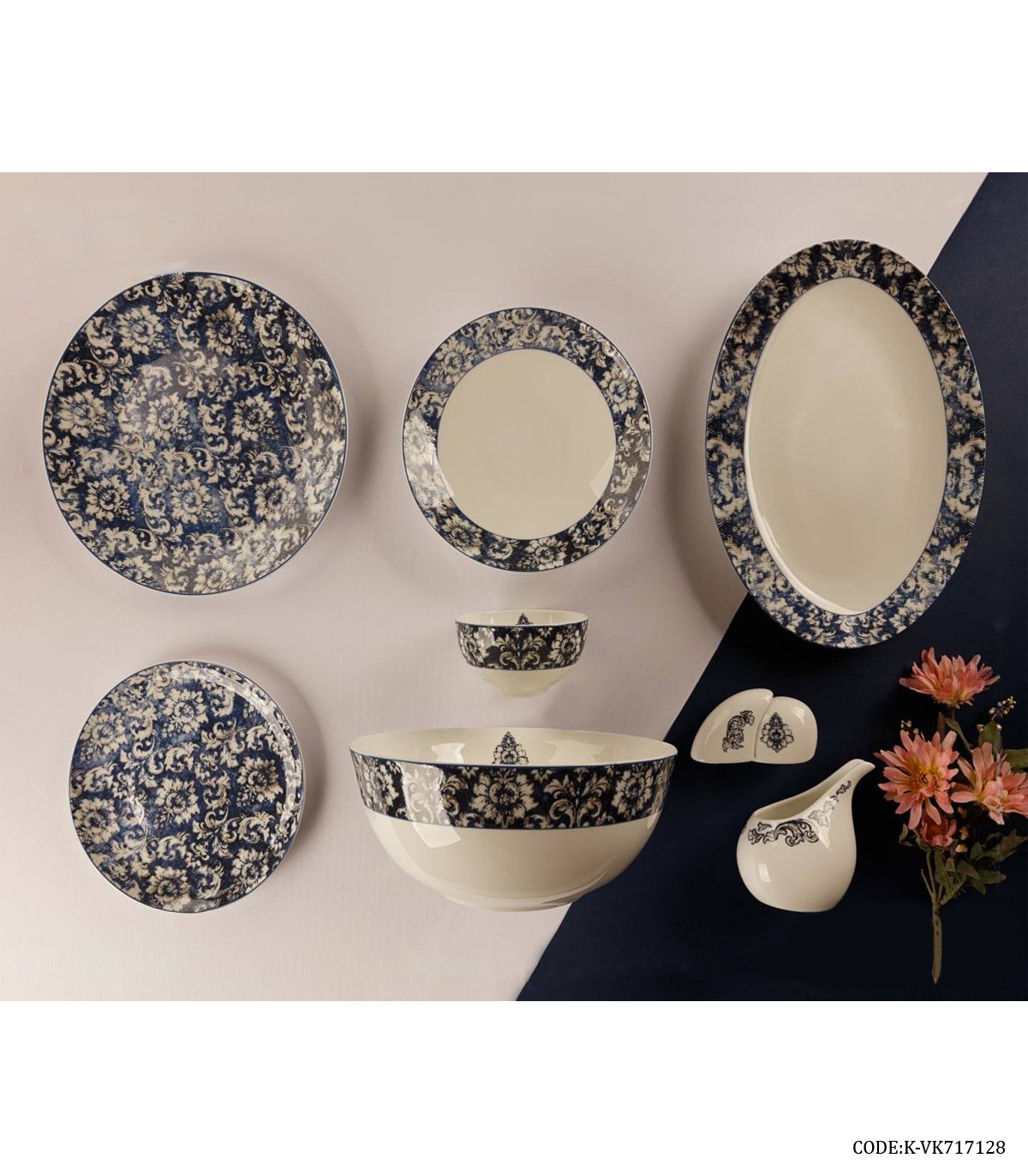 سرویس چینی شش نفره ۲۹ پارچه طرح پیچک سرمه ای مدل ۷۱۷۱۲۸