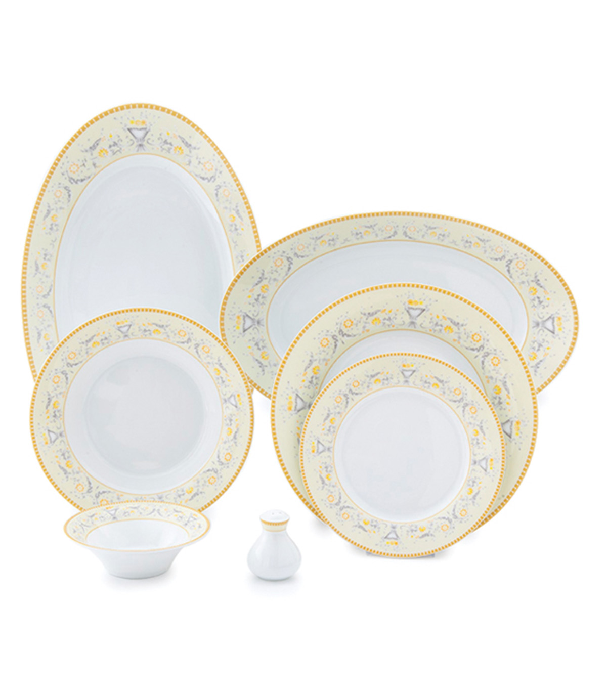 - شامل: 6عدد پلوخوری، 6عدد خورش خوری، 6عدد میوه خوری، 2عدد دیس بیضی کوچک، یک عدد دیس بیضی بزرگ، 6 عدد پیاله کوچک، 6 عدد پیاله بزرگ، 1 عدد سالاد خوری، 2 عدد نمک پاش