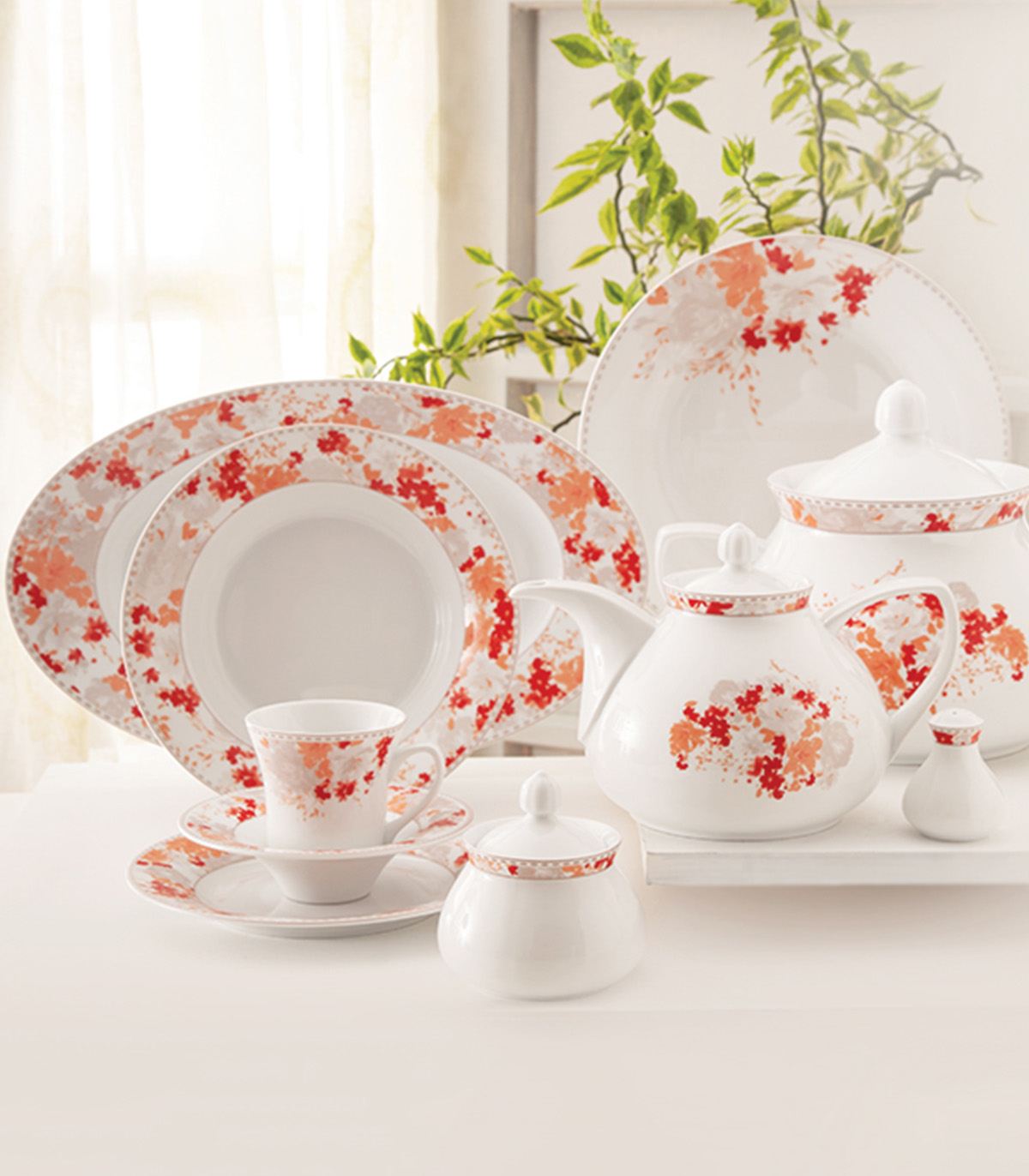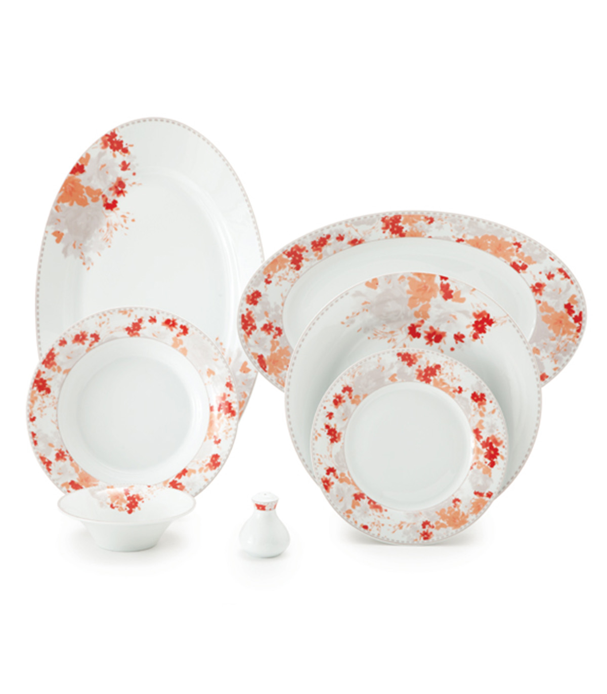 - شامل: 6عدد پلوخوری، 6عدد خورش خوری، 6عدد میوه خوری، 2عدد دیس بیضی کوچک، یک عدد دیس بیضی بزرگ، 6 عدد پیاله کوچک، 6 عدد پیاله بزرگ، 1 عدد سالاد خوری، 2 عدد نمک پاش