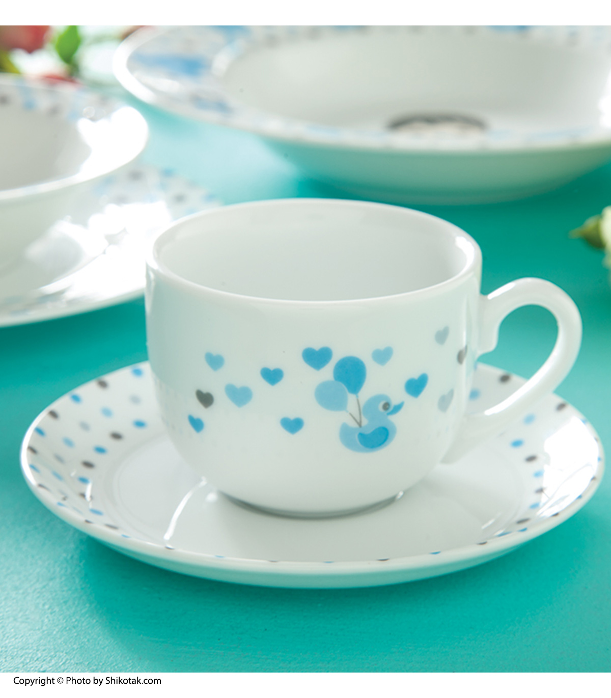 شامل | 1عدد بشقاب خورش خوری، 1عدد بشقاب میوه خوری، 1عدد سالاد خوری، 1عدد فنجان، 1عدد نعلبکی |