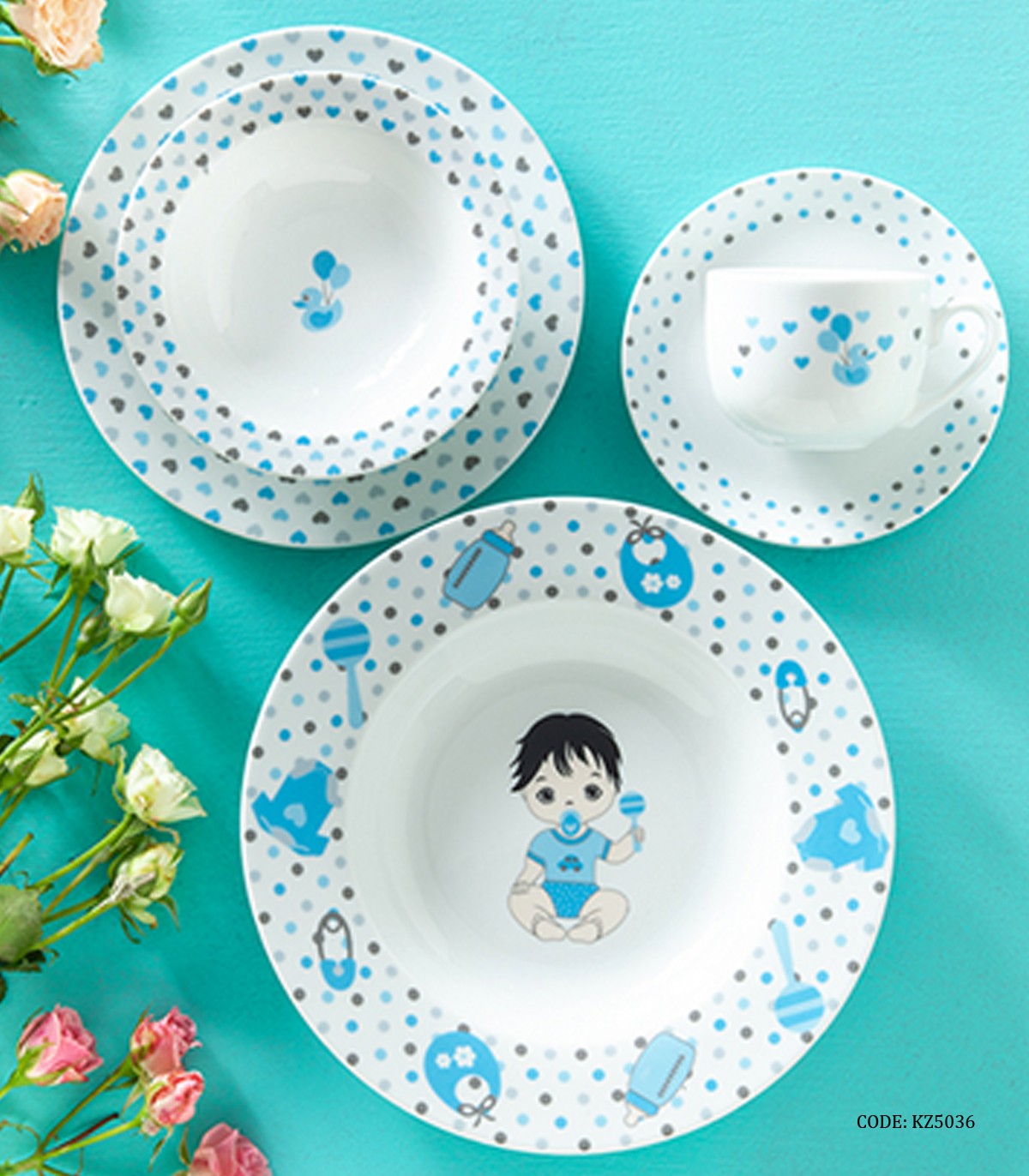 سرویس چینی نوزاد زرین طرح New Born آبی