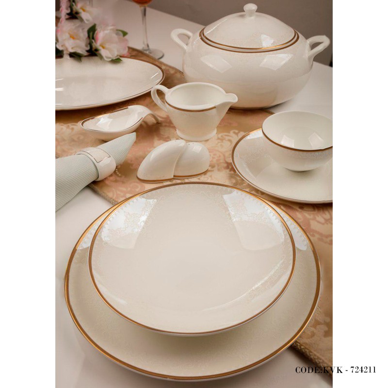 - شامل 19عدد پلوخوری، 19عدد خورش خوری، 19عدد میوه خوری (پیش دستی)، 18عدد پیاله، 2عدد دیس بیضی بزرگ، 1عدد سس خوری، 1عدد کاسه بزرگ، 3عدد نمکدان، 2عدد دیس بیضی کوچک، یک عدد سوپ خوری همراه با در، 1عدد قوری همراه با در، 12عدد فنجان، 6عدد قهوه خوری، 6عدد نعلبکی قهوه خوری، 1عدد قندان همراه با در، 1عدد شکرریز، 1عدد حلقه دستمال، 1عدد ظرف فینگرفود