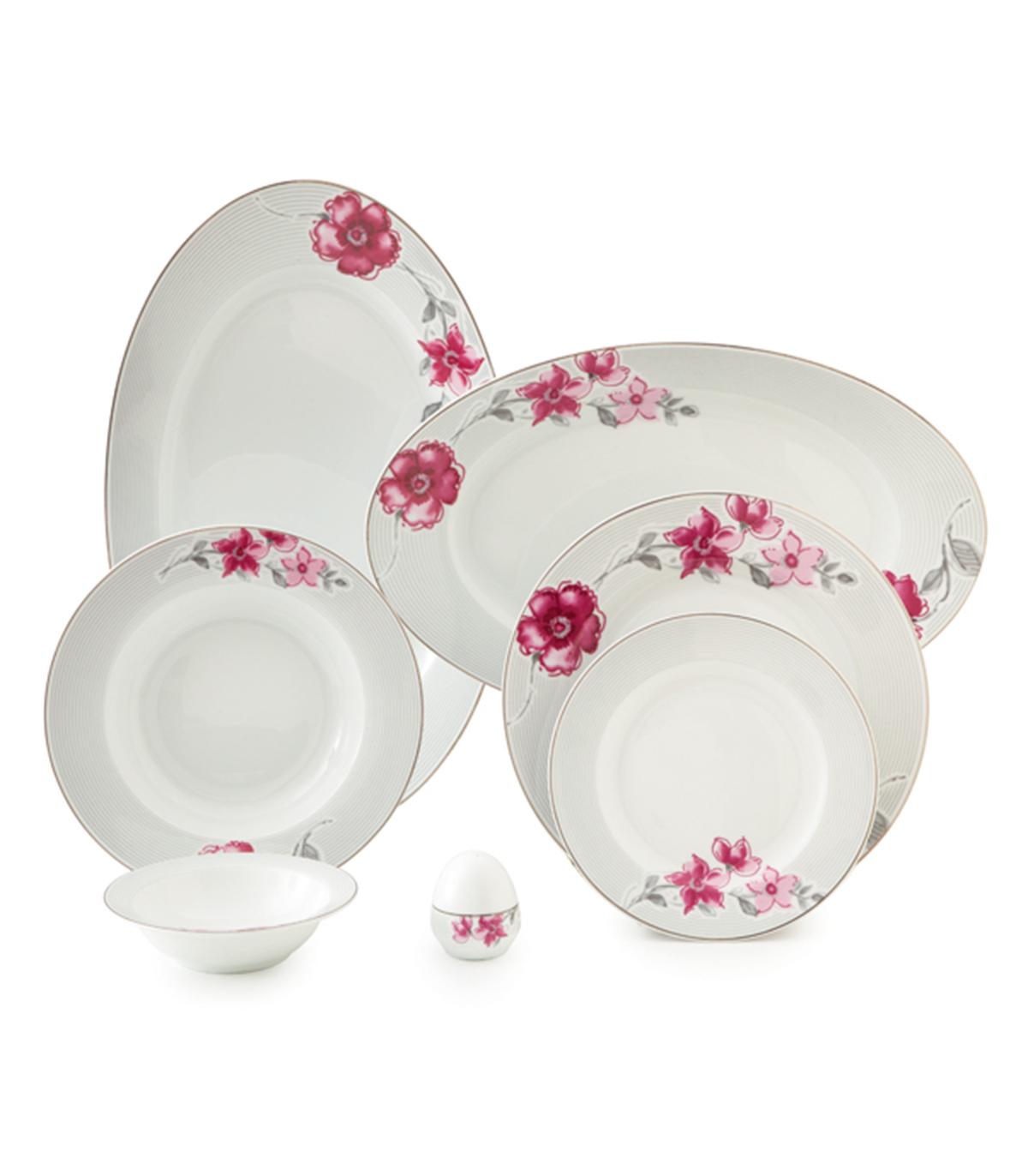 شامل | 6عدد پلوخوری، 6عدد خورش خوری، 6عدد میوه خوری، یک عدد دیس بیضی کوچک، یک عدد دیس بیضی بزرگ، 6عدد سالاد خوری کوچک، 2عدد نمک پاش |