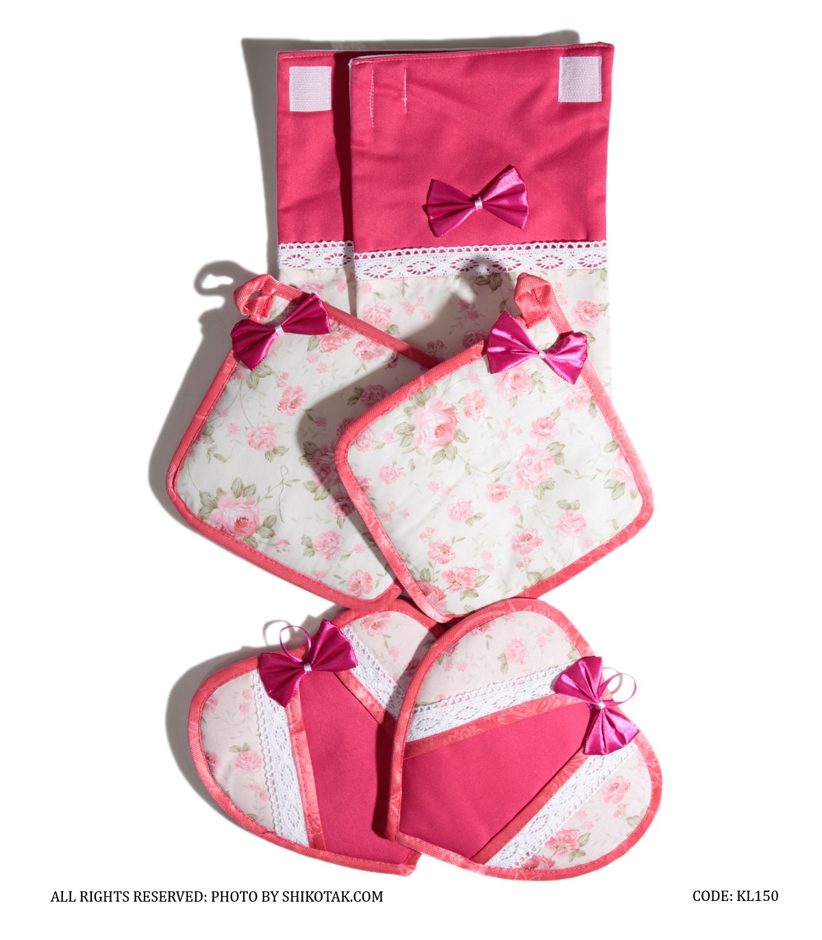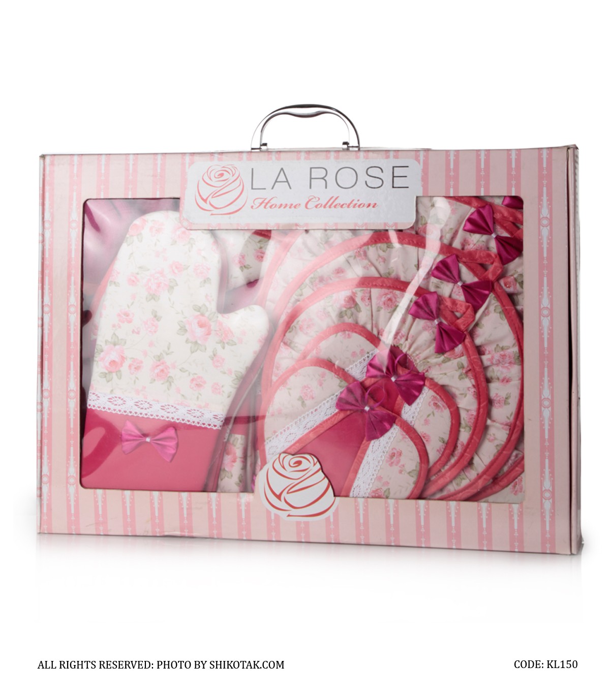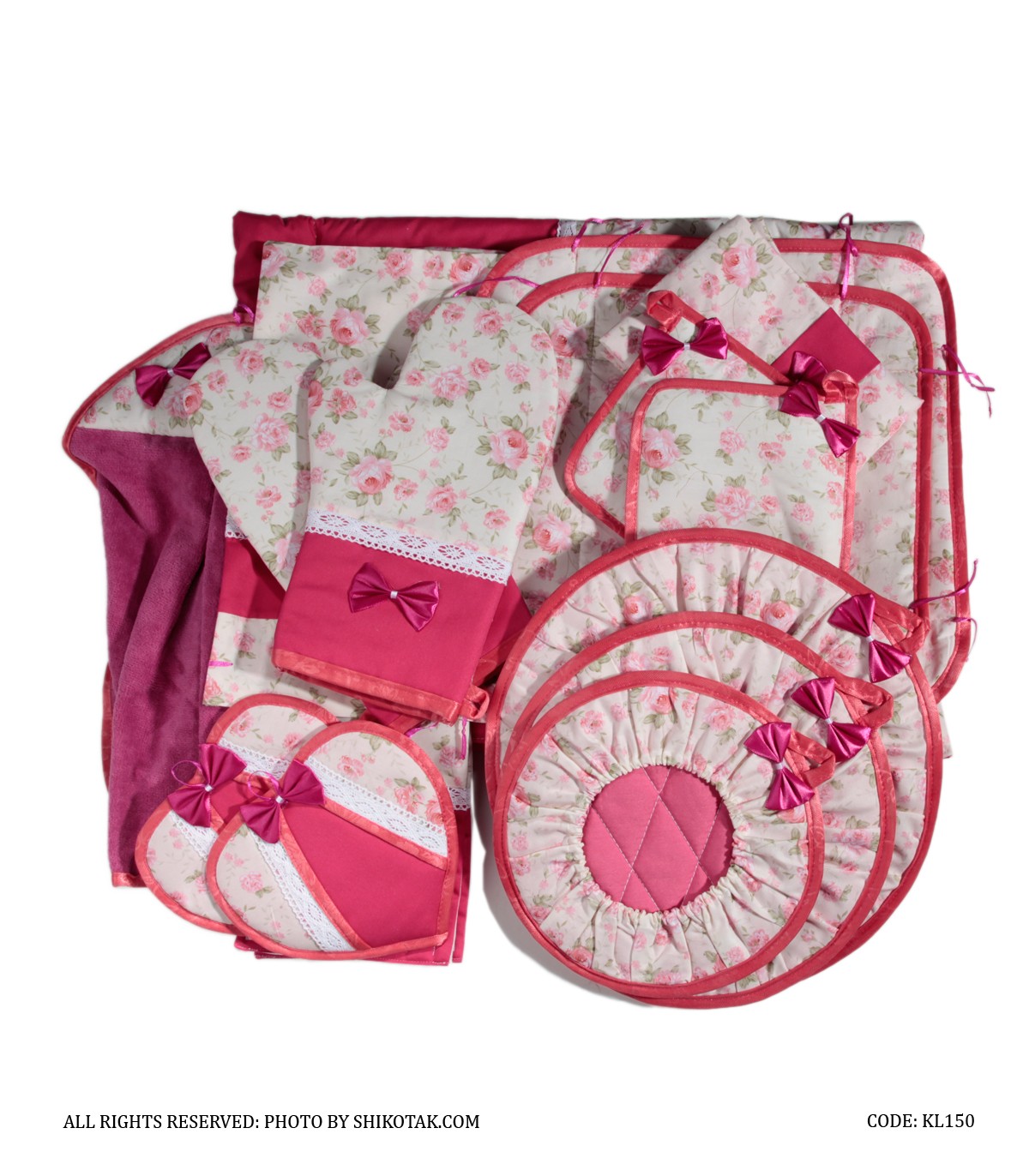 - محتویات بسته شامل: نمگیر ظرف-پیش بند-دمکنی کش داز-دستکش فر-دستگیره قلبی-دستگیره مربع-کیسه نان-جا نونی رومیزی-کیسه سبزی-جا سبزی رومیزی-حوله-دستگیره یخچال