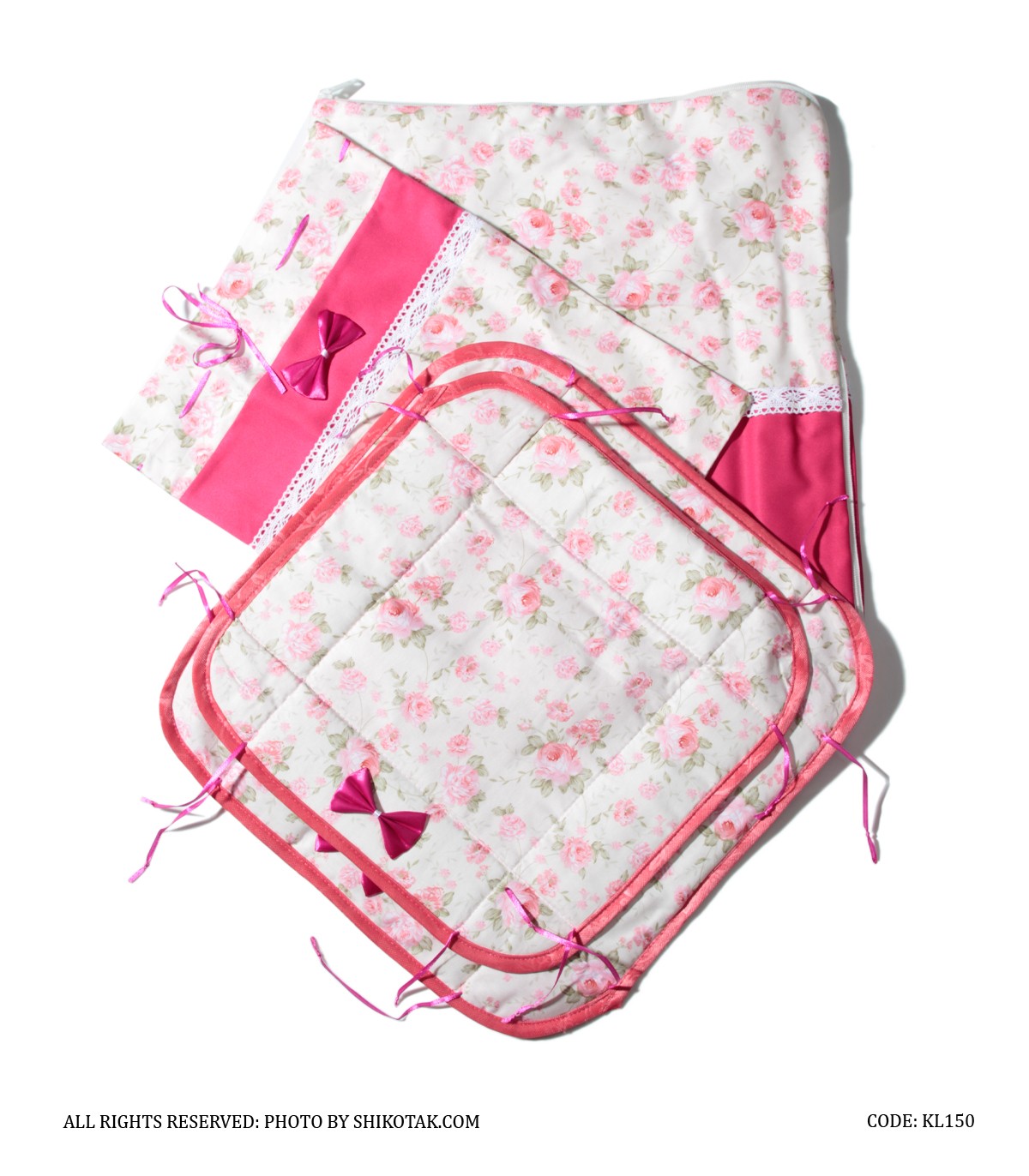 سرویس آشپزخانه پارچه ای عروس ۱۸ تکه سرخابی Flowerita