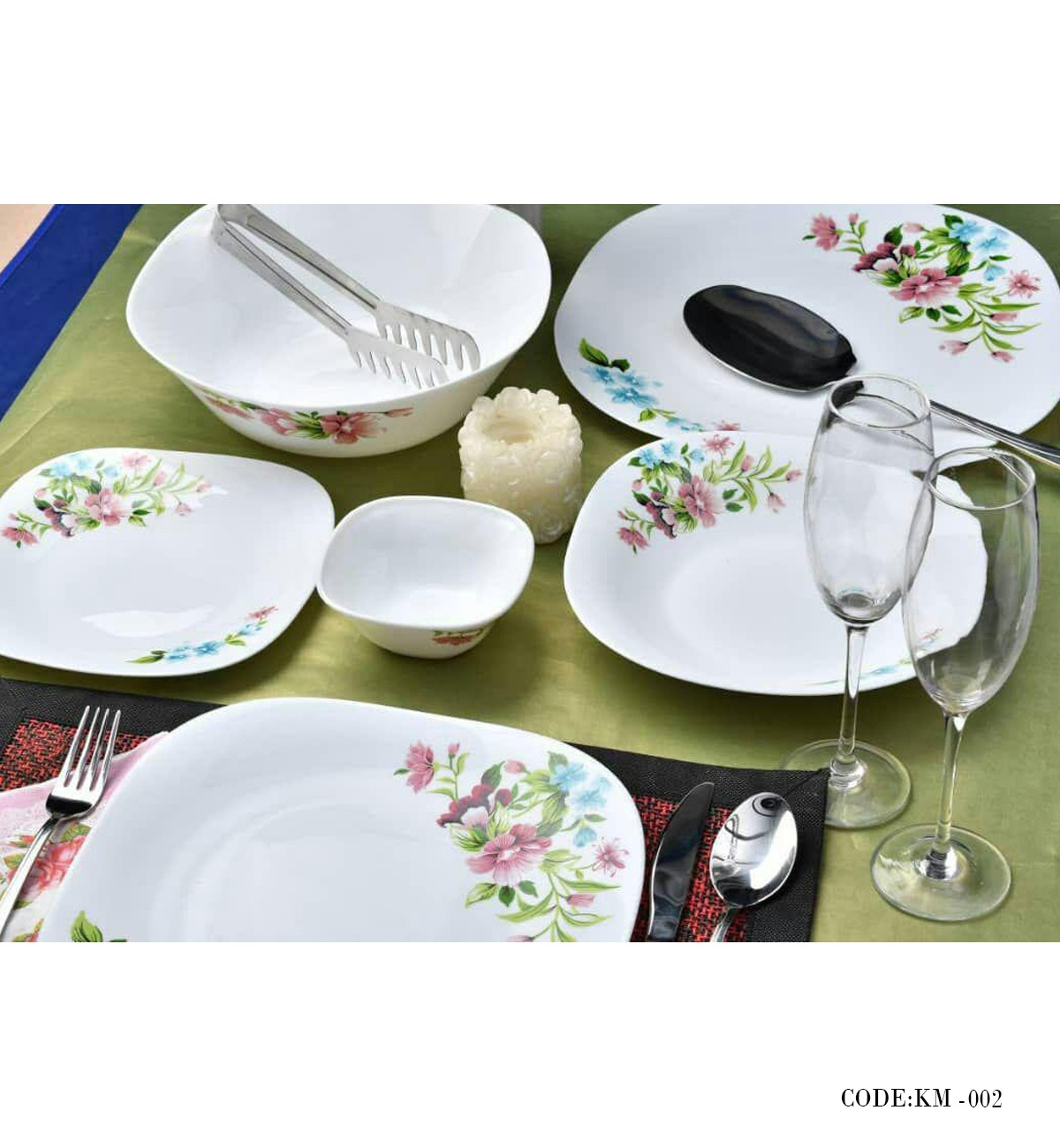 - شامل: 6عدد پلوخوری، 6عدد خورش خوری، 6عدد میوه خوری، 6عدد ماست خوری، یک عدد سالادخوری، یک عدد دیس