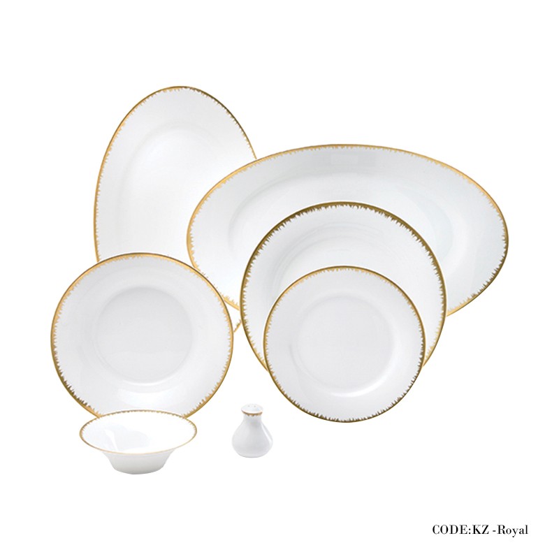 - شامل: 6 عدد پلوخوری، 6 عدد خورش خوری، 6 عدد میوه خوری، 2عدد دیس بیضی کوچک، یک عدد دیس بیضی بزرگ، 6 عدد پیاله کوچک، 6 عدد پیاله بزرگ، 1 عدد سالاد خوری، 2 عدد نمک پاش